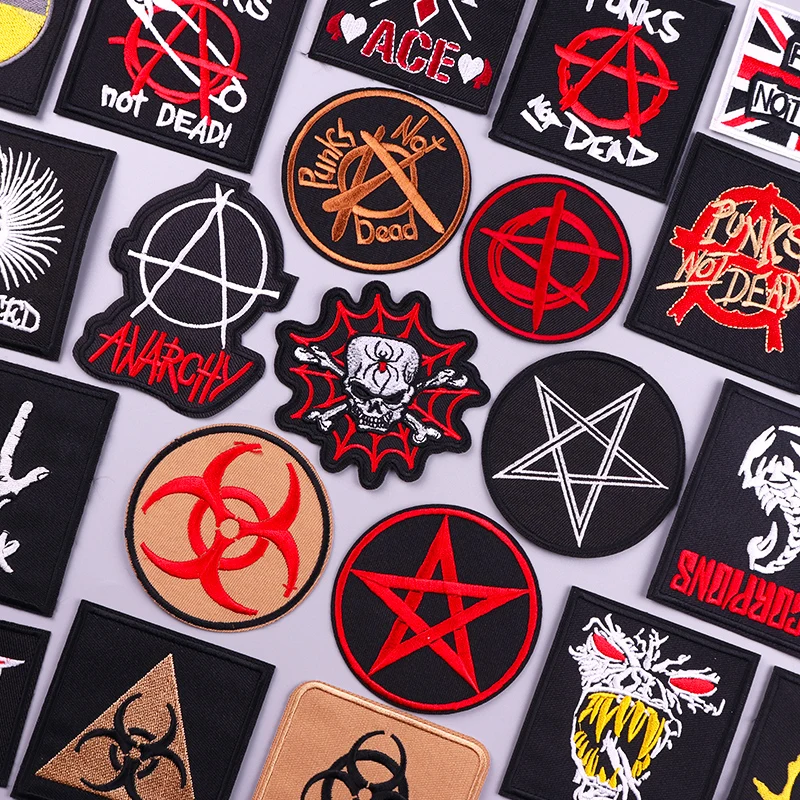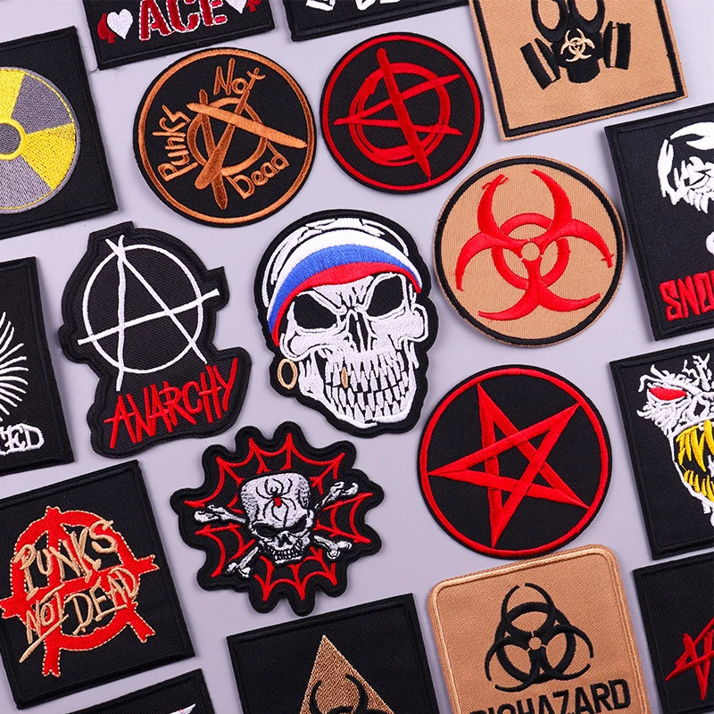 Parche bordado de calavera, parches para planchar con letras para ropa, parches Punk Rock para ropa, parche adhesivo de costura nuclear bioquímico