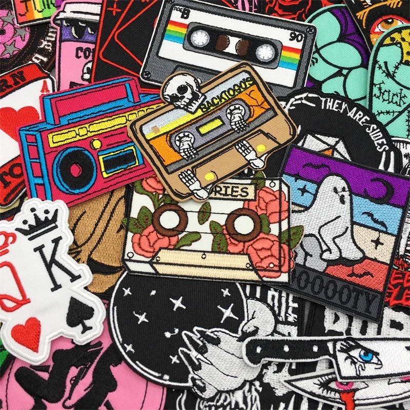 Parche bordado de calavera Punk, parche de Ojos de terror, parches de hierro para ropa, chaqueta, parches de póquer para coser