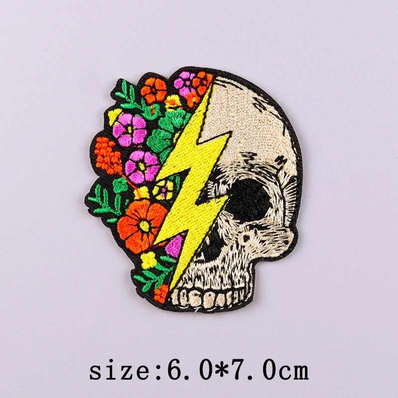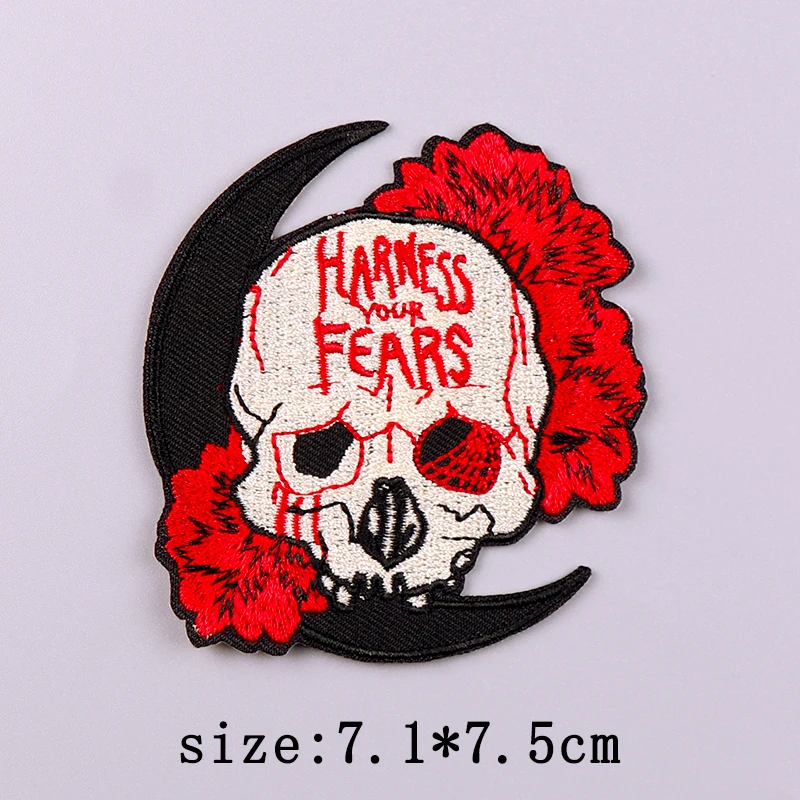 Parche bordado de calavera Punk, parches de hierro para ropa, parches bordados de Hip Hop en ropa, parche Fusible para insignias de ropa
