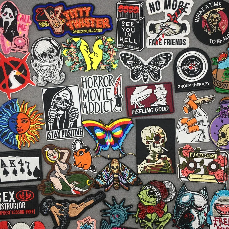 Parche bordado de calavera Punk, parches para planchar para ropa, parches bordados de rana para ropa, parche Fusible sexual, insignia adhesiva