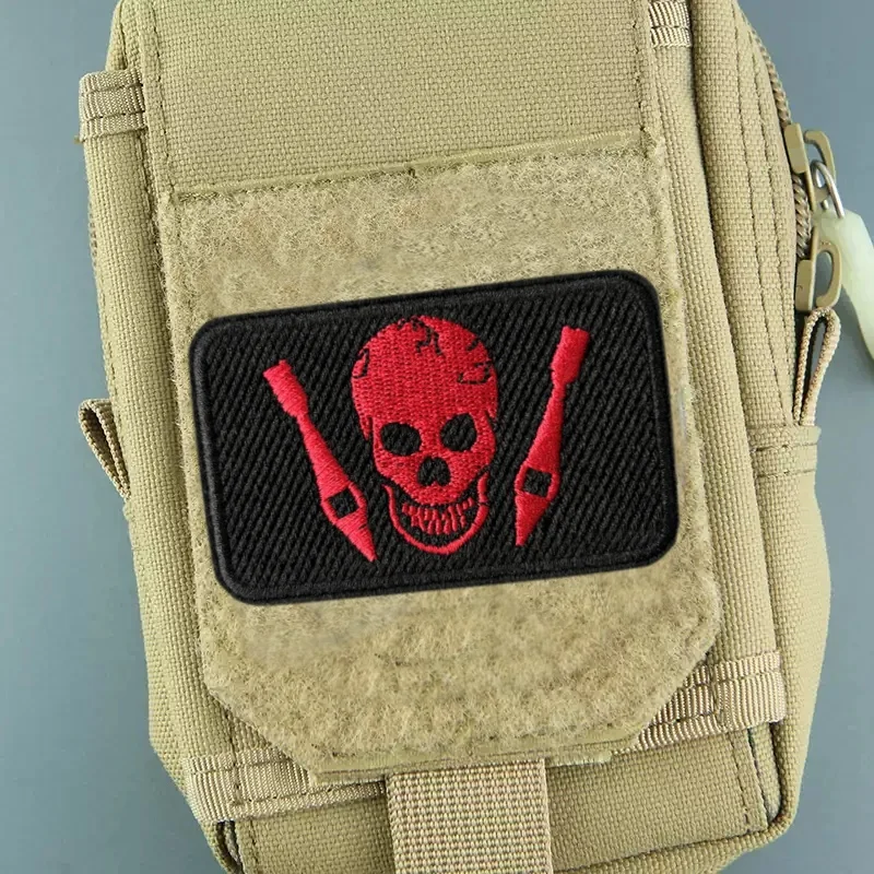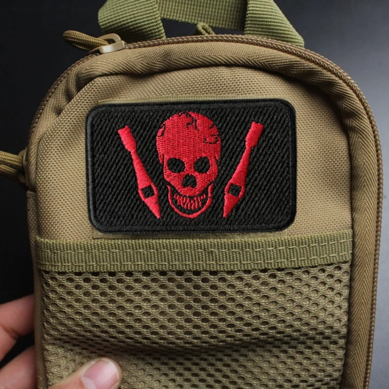 Parche bordado SKULL en ropa, insignia táctica de moral, parches militares con gancho, pegatinas para mochila, brazalete