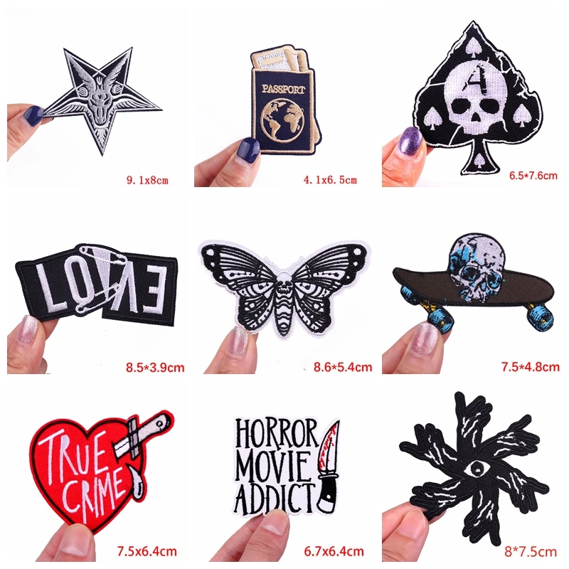 Parche Punk de película de terror/parche de letras, parche bordado de Calavera, parches para planchar para ropa, chaquetas, pegatinas para coser, venta al por mayor, 10