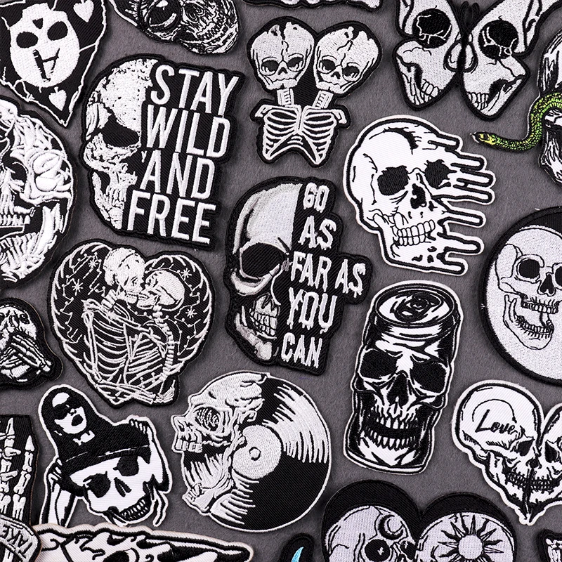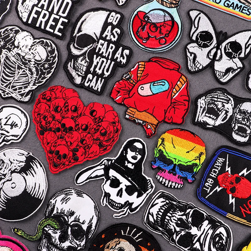 Parche bordado de calavera de terror, parches termoadhesivos para ropa, parche Punk de Hip Hop para ropa DIY