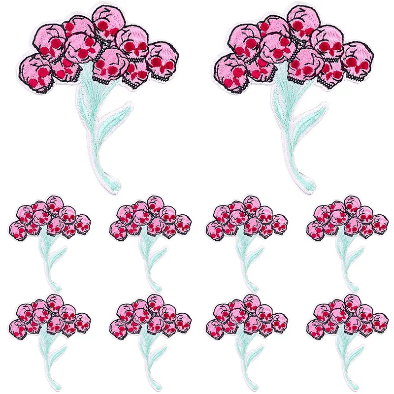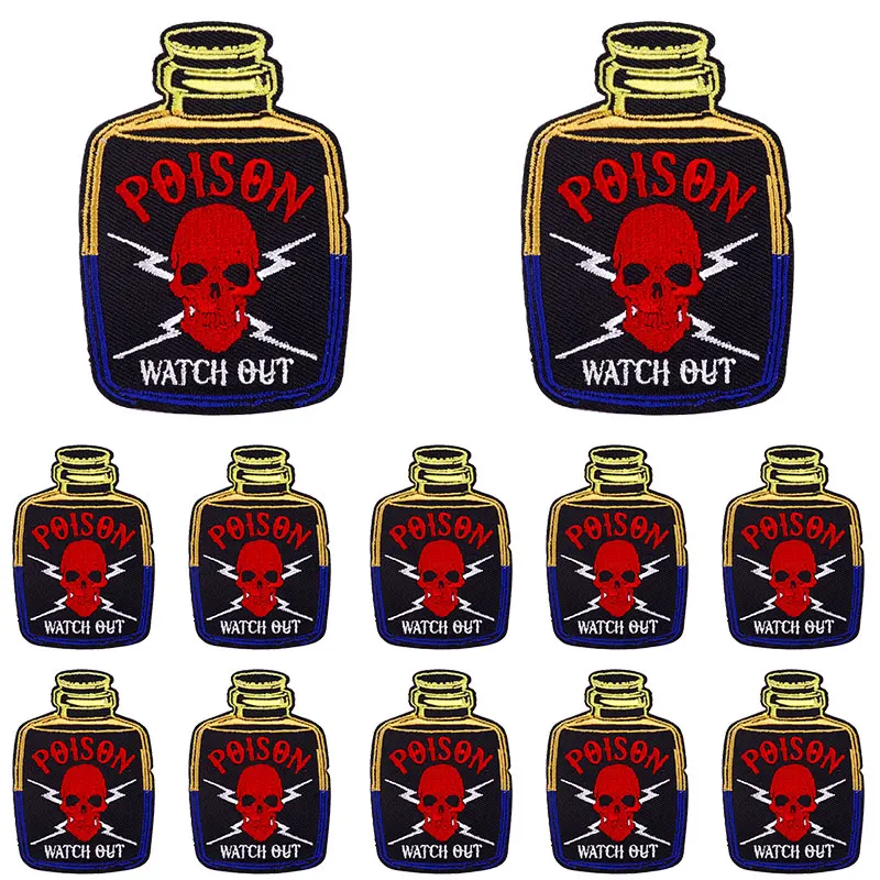 Parche bordado con calavera de terror personalizada, botella Punk, parches termoadhesivos para ropa, DIY, 10 Uds.