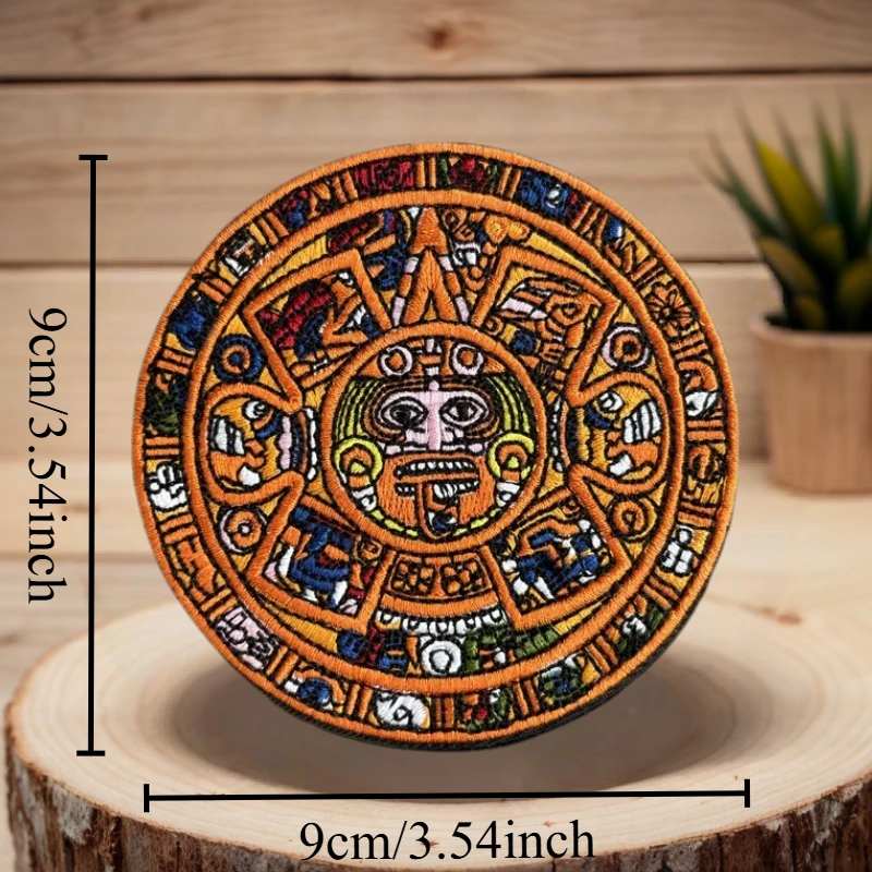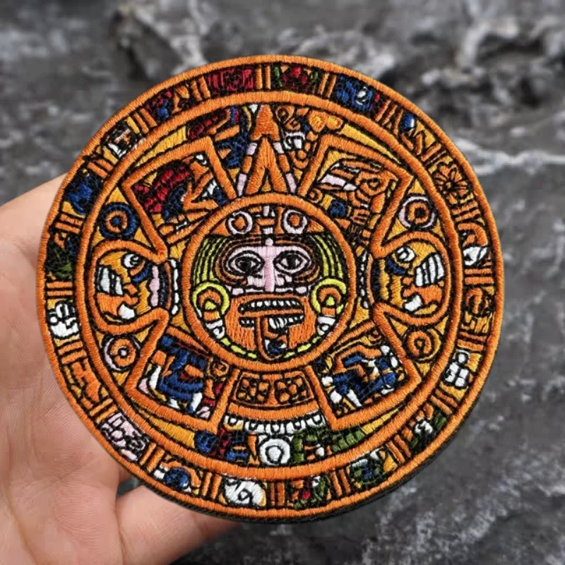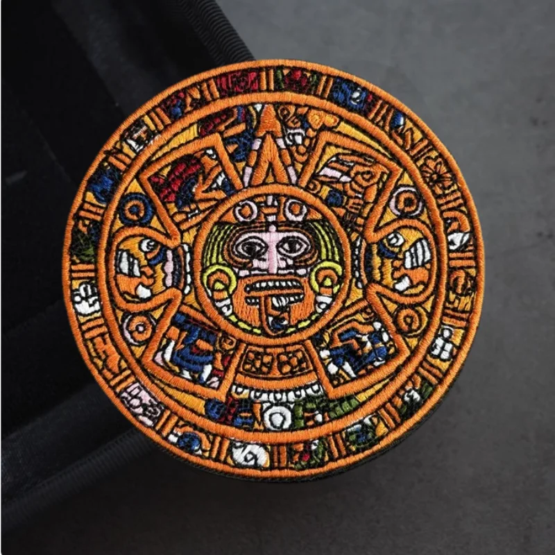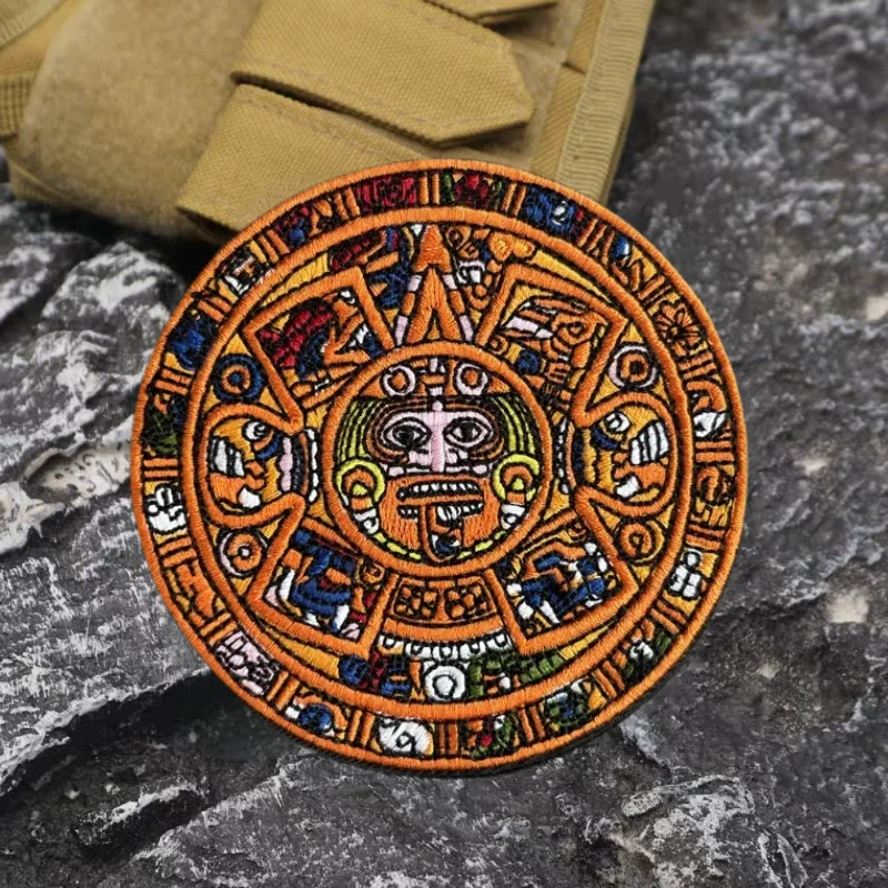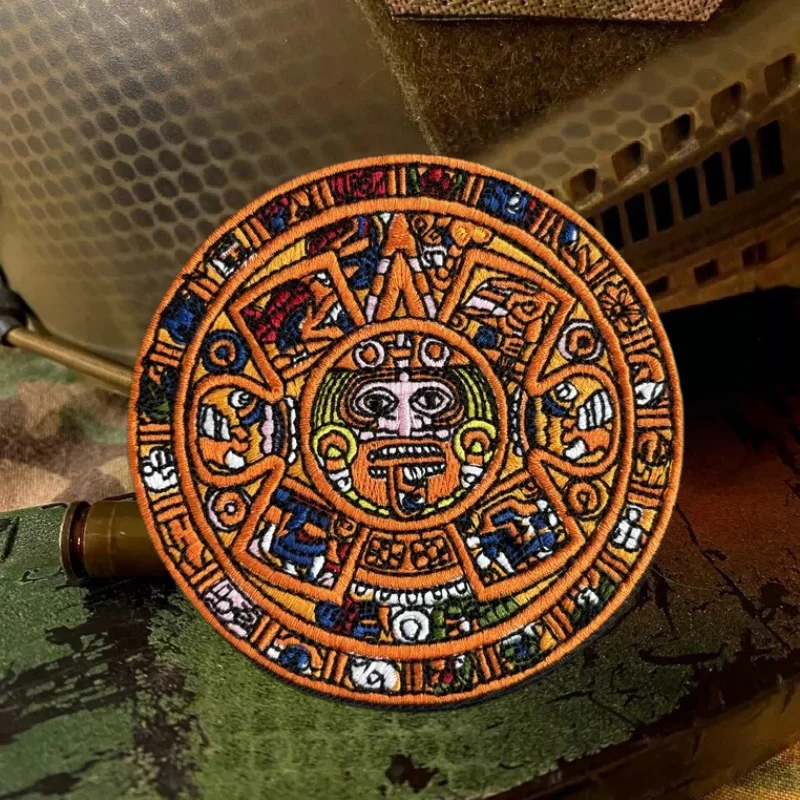 Parche bordado de calendario Maya Aztec Sunstone, insignia de moral táctica, brazalete de gancho y bucle, parches adhesivos para mochila para ropa