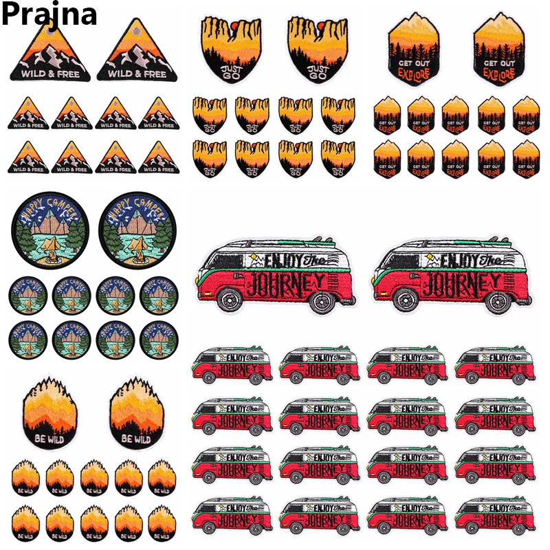 Parche bordado de Camping de montaña, apliques de costura DIY, parches termoadhesivos para ropa, 10 unids/lote