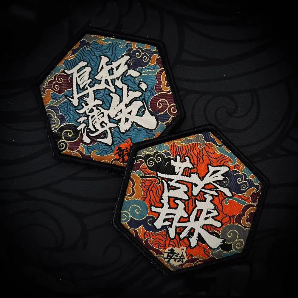 Parche bordado de caracteres chinos hexagonales, todos los pacientes tienen su recompensa acumulada de forma constante, insignia táctica para la ropa