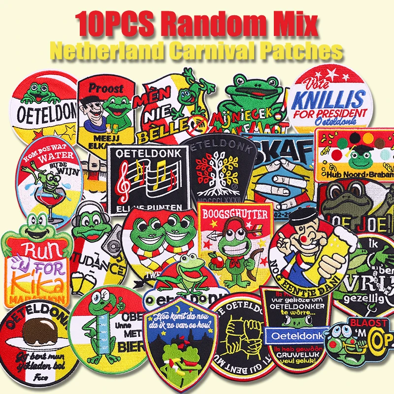 Parche bordado de Carnaval de Países Bajos, mezcla aleatoria, insignias para coser, parche con emblema Oeteldonk de País de tierras, parches para planchar para ropa, 10 Uds.