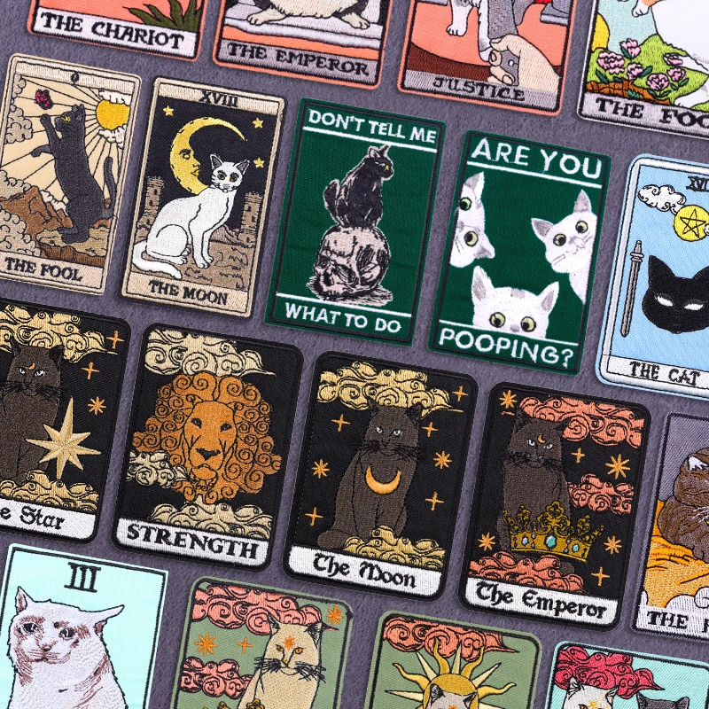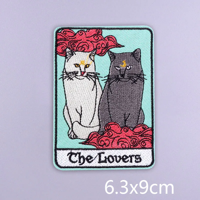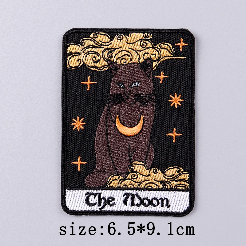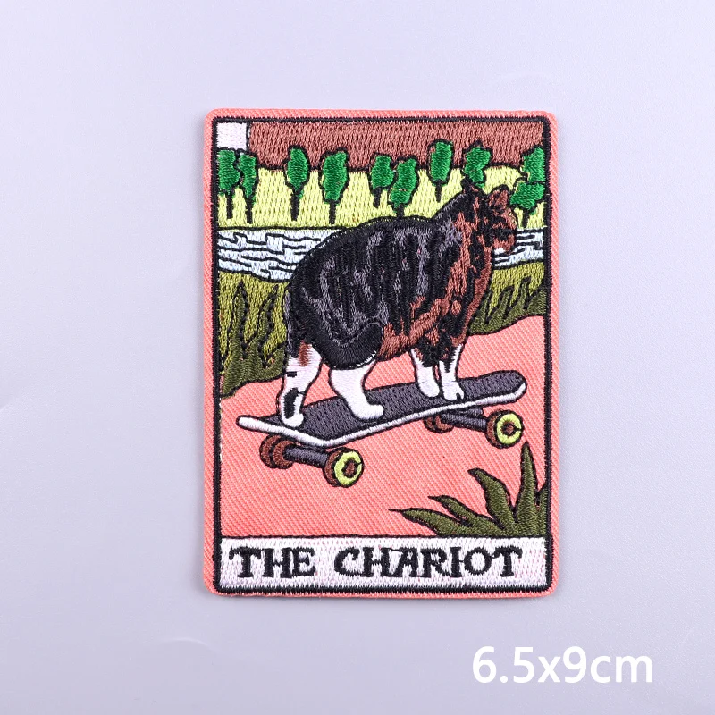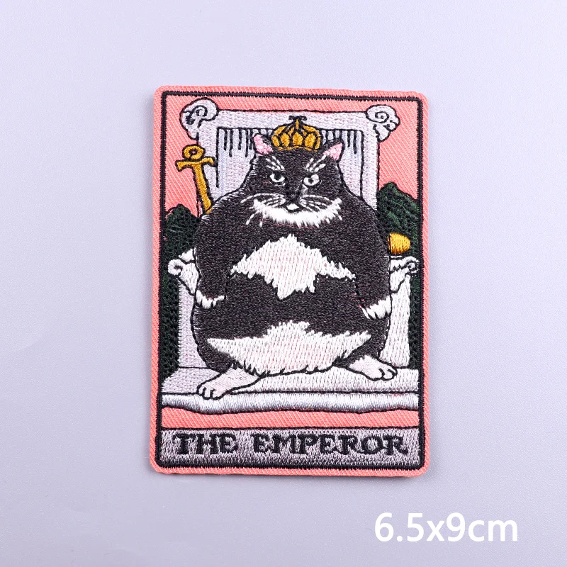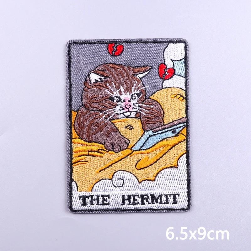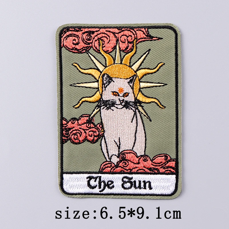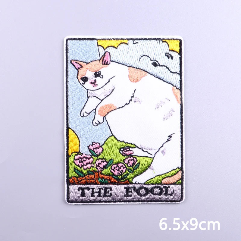 Parche bordado de cartas de Tarot de animales, parches de hierro para ropa, insignias/pegatinas fusibles, apliques/parches de gato de dibujos animados para ropa