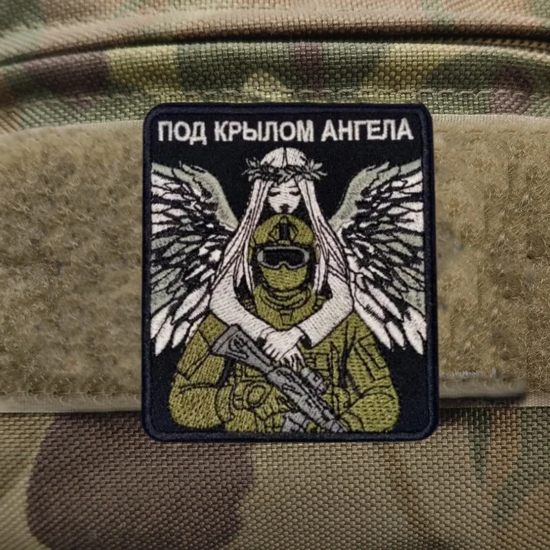 Parche bordado Chevron para ropa "debajo del ala del ángel de Rusia", parches tácticos militares, pegatina para mochila, gancho y bucle