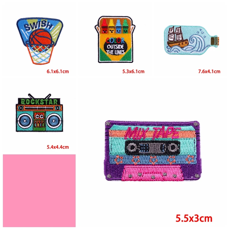10 unids/lote de cinta de parche de dibujos animados, parche bordado, parches de hierro para ropa, parches de botella ondulados en ropa, pegatinas de apliques para coser