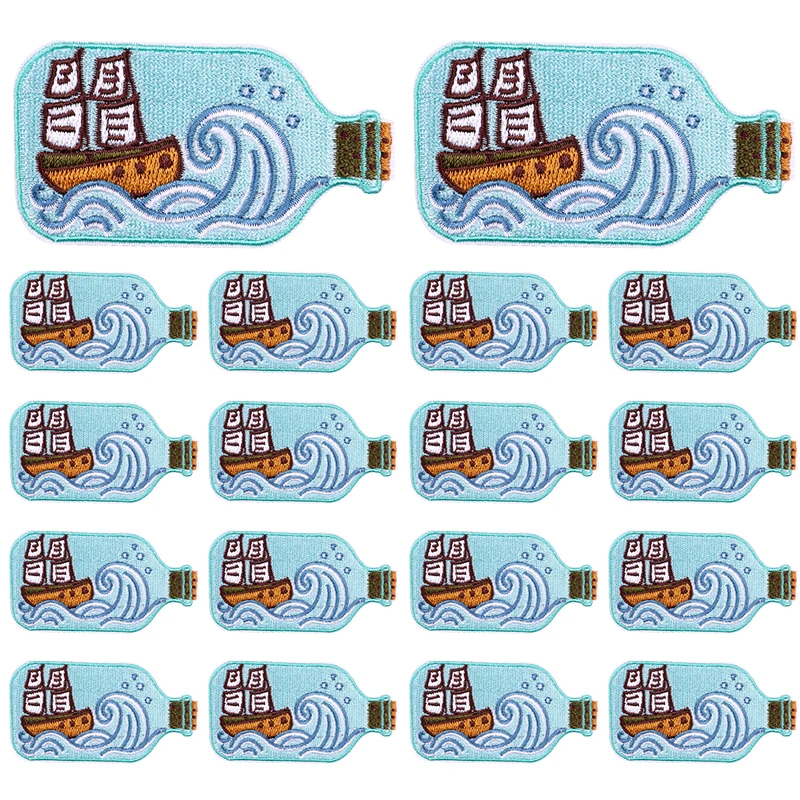 Parche bordado de cinta de dibujos animados, parches para planchar en la ropa, parches de botella ondulada en la ropa, pegatinas de apliques de costura, 10 unids/lote