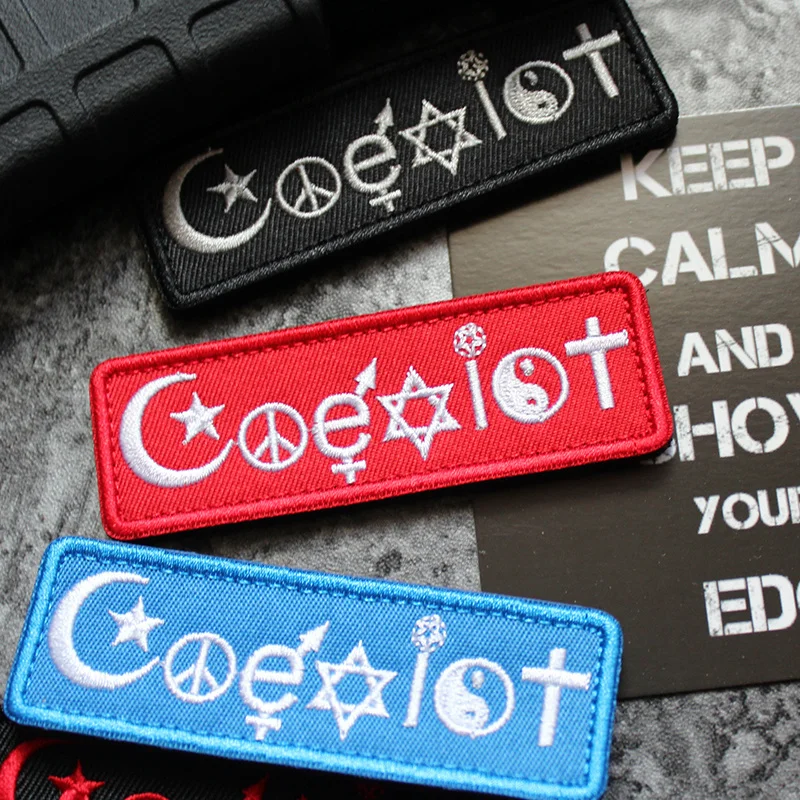 Coexiste parche bordado para ropa Taiji Cross Hexagon Star Mark táctico militar mochila pegatinas parches de gancho y bucle