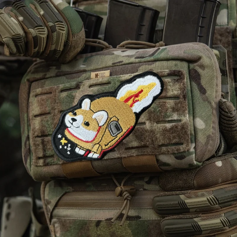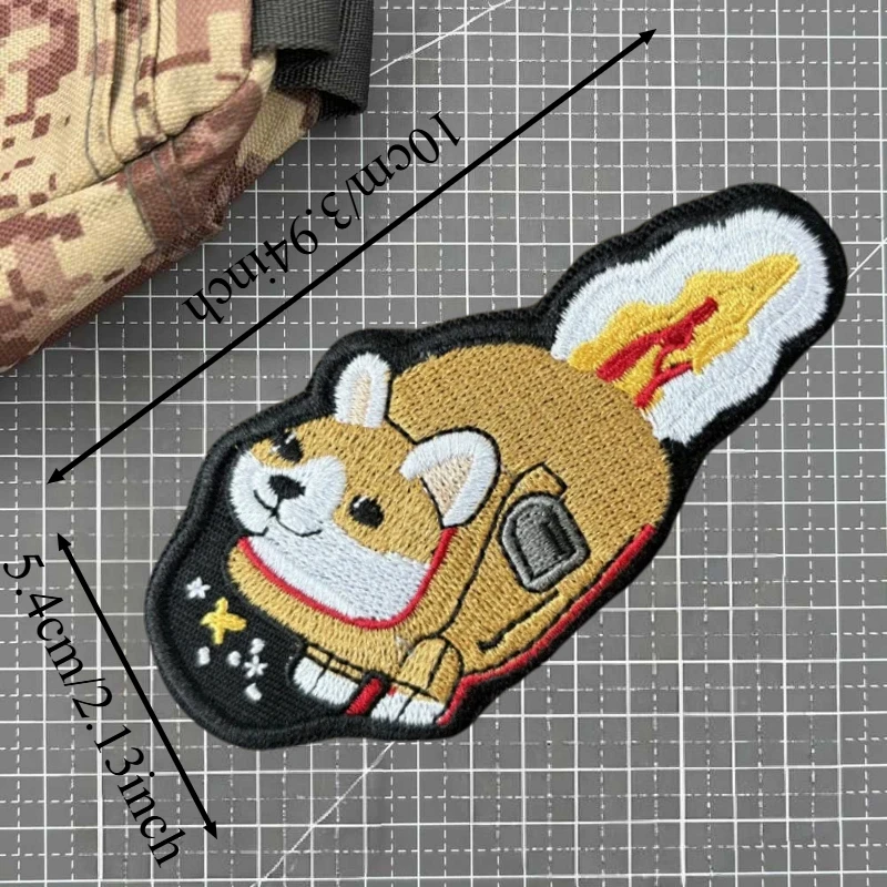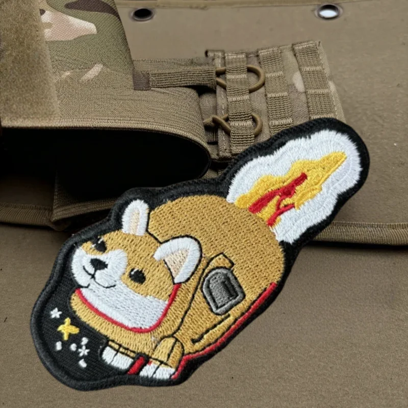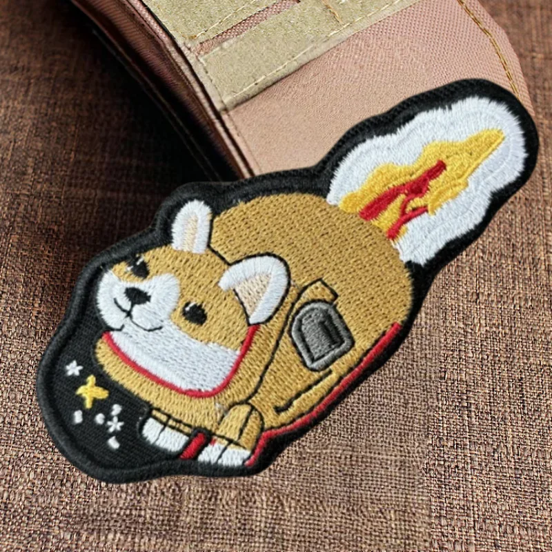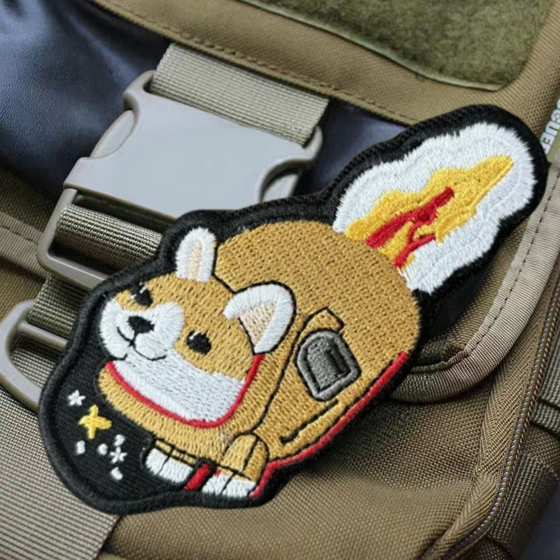 Corgi Rocket bordado parche chaleco táctico gancho y bucle sombrero Morale insignia mochila pegatinas decorativas parches de brazalete para ropa