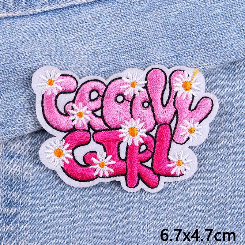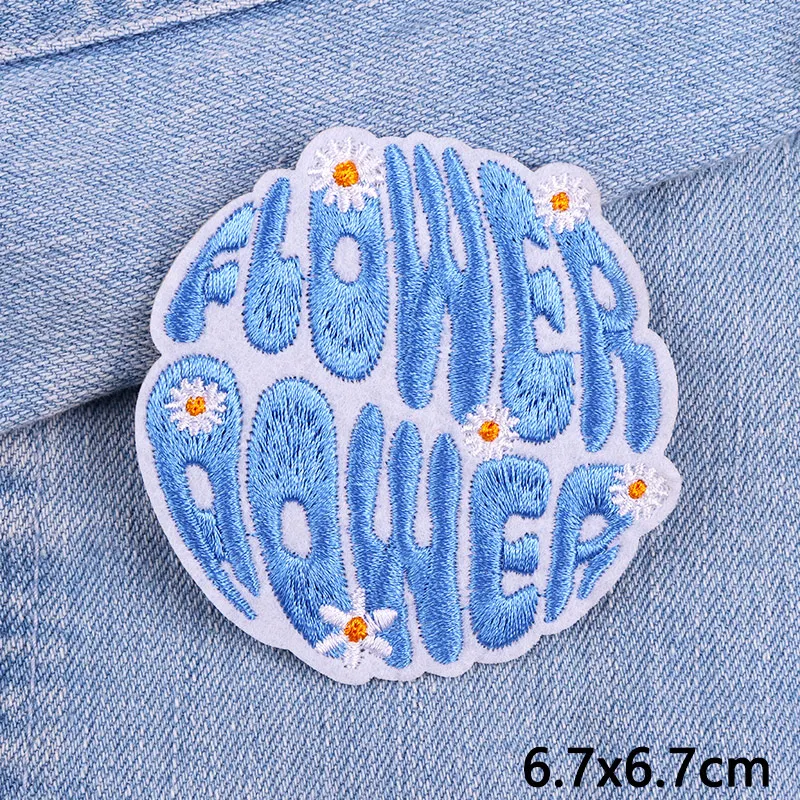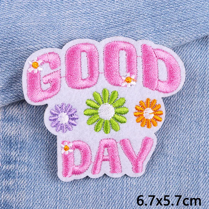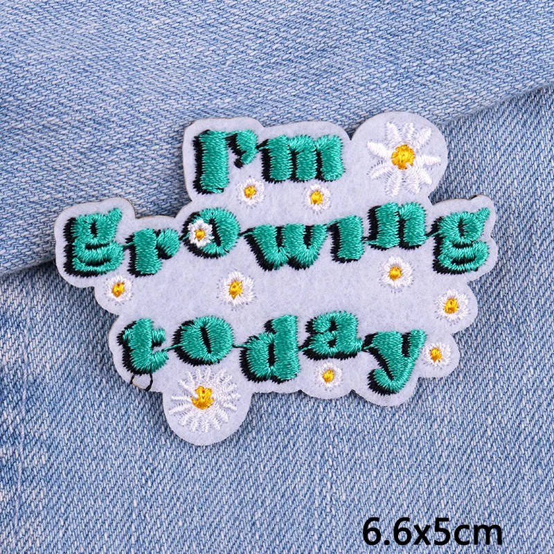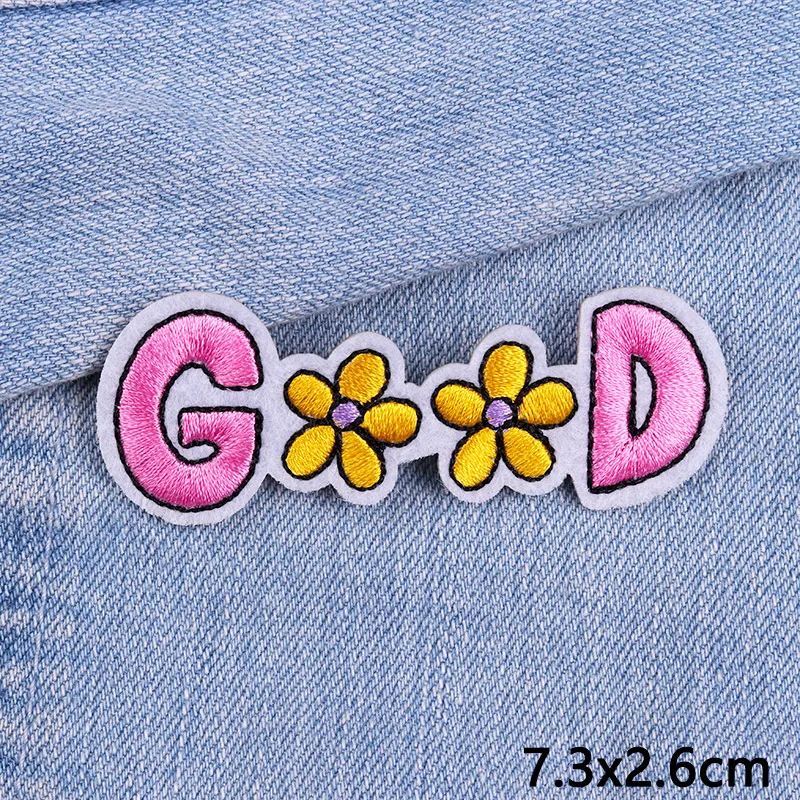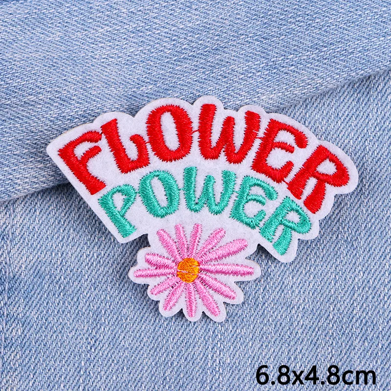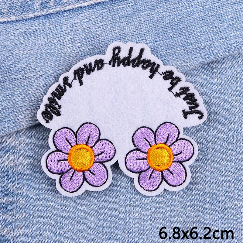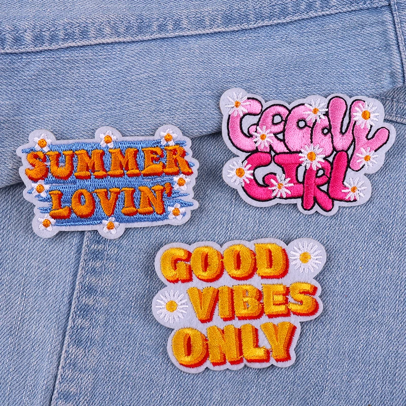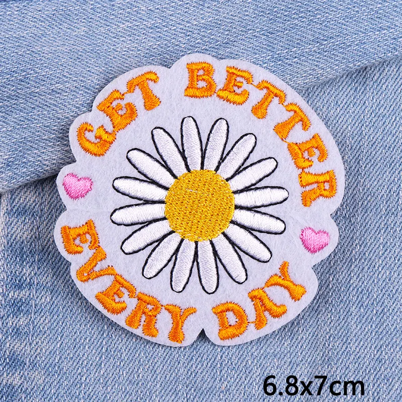 Parche bordado de margaritas/letras inglesas coloridas, parches de hierro para ropa, parches de dibujos animados para ropa, chaqueta, mochila, coser DIY