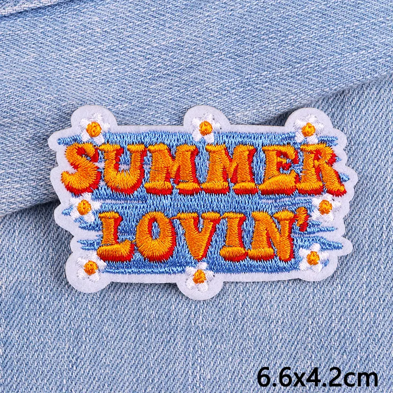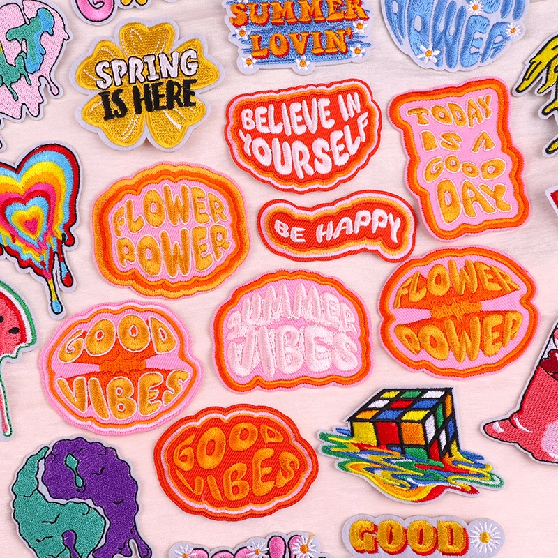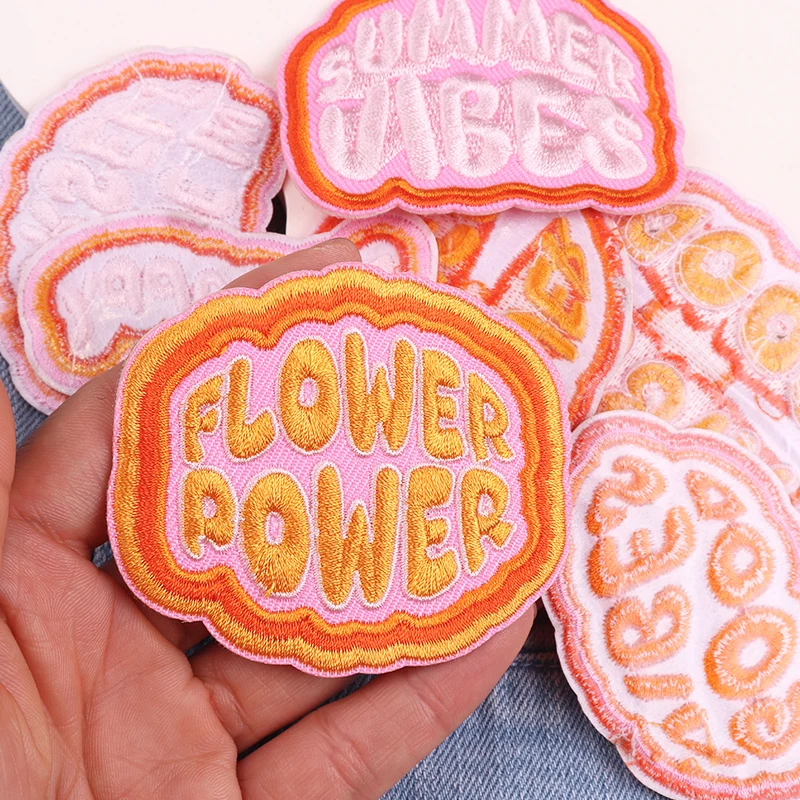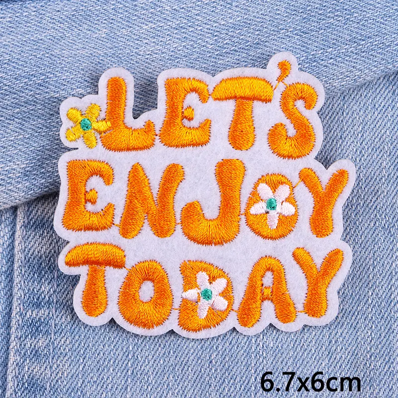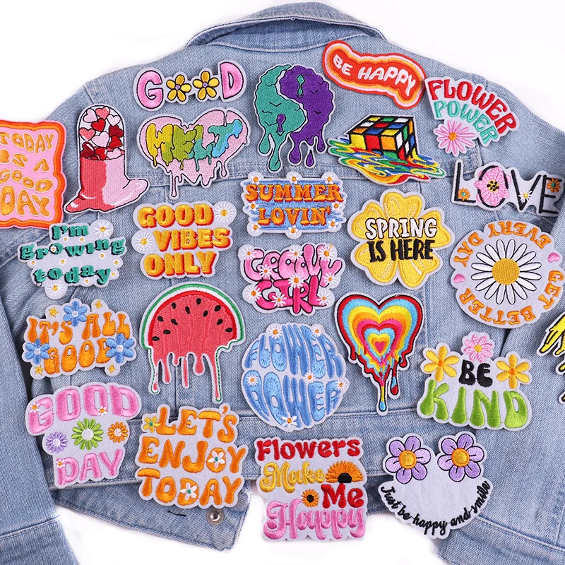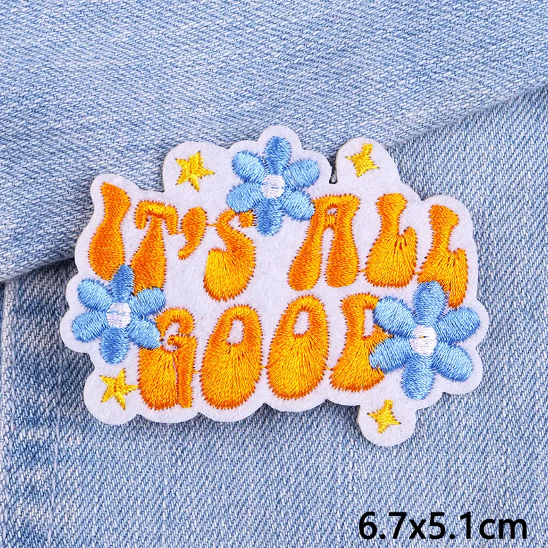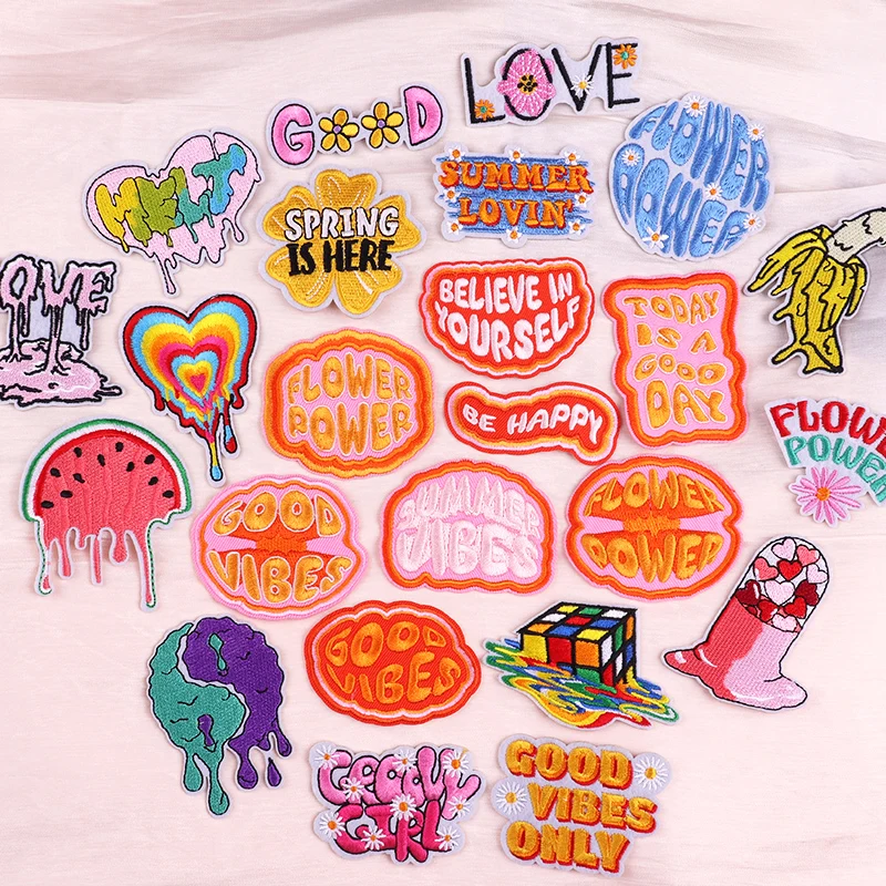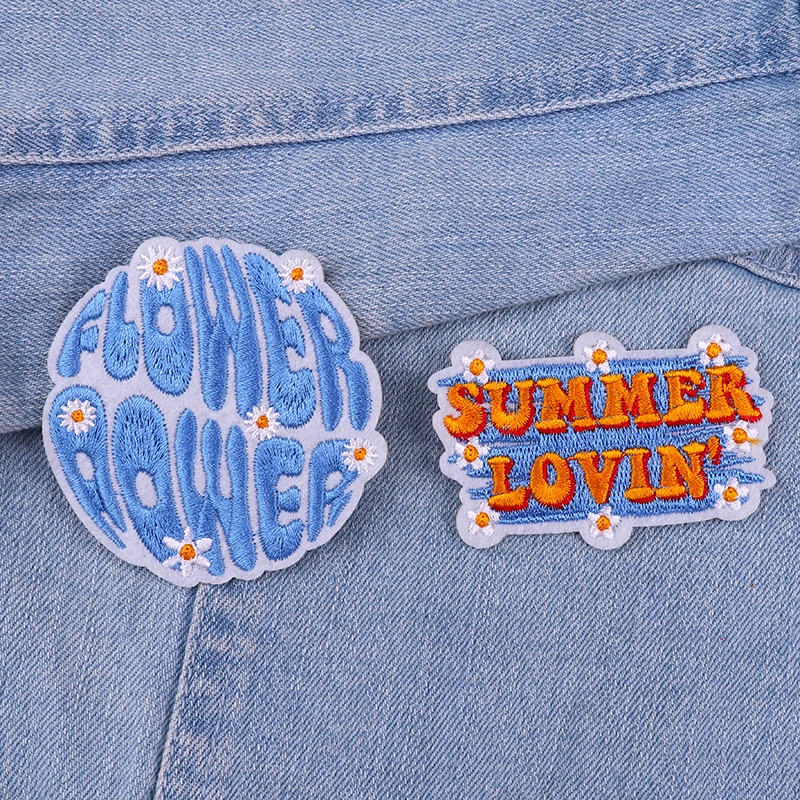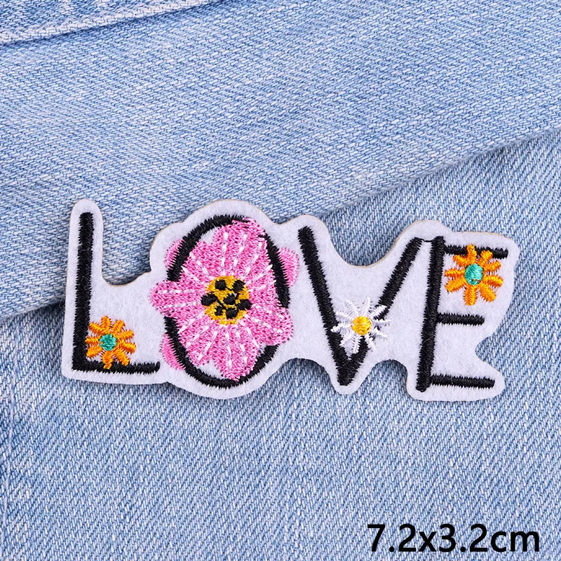 Parche bordado de margaritas/letras inglesas coloridas, parches de hierro para ropa, parches de dibujos animados para ropa, chaqueta, mochila, coser DIY