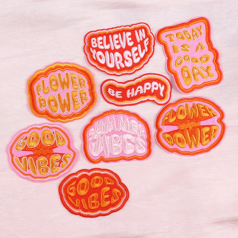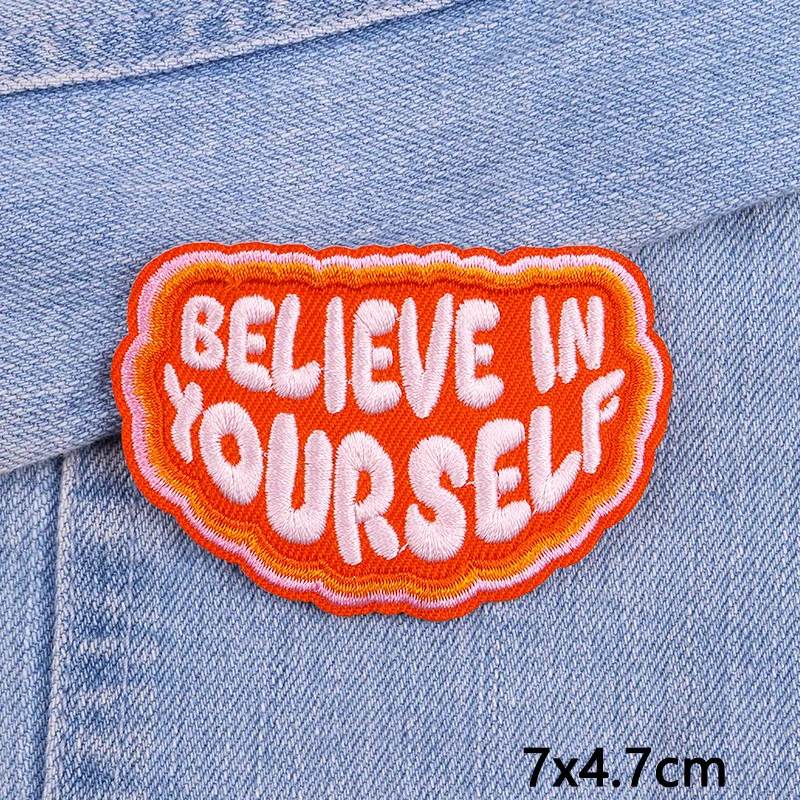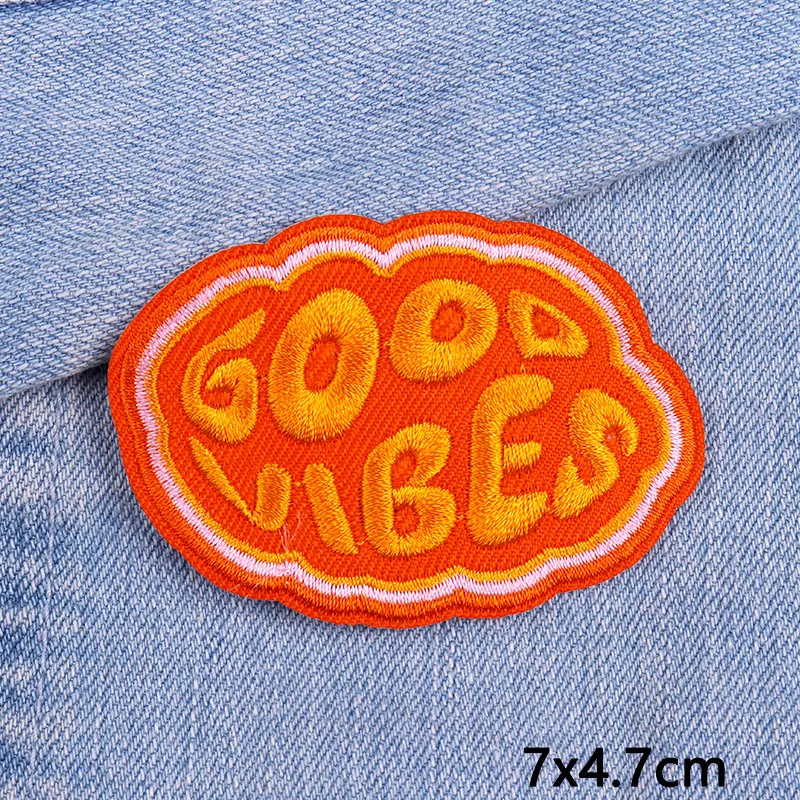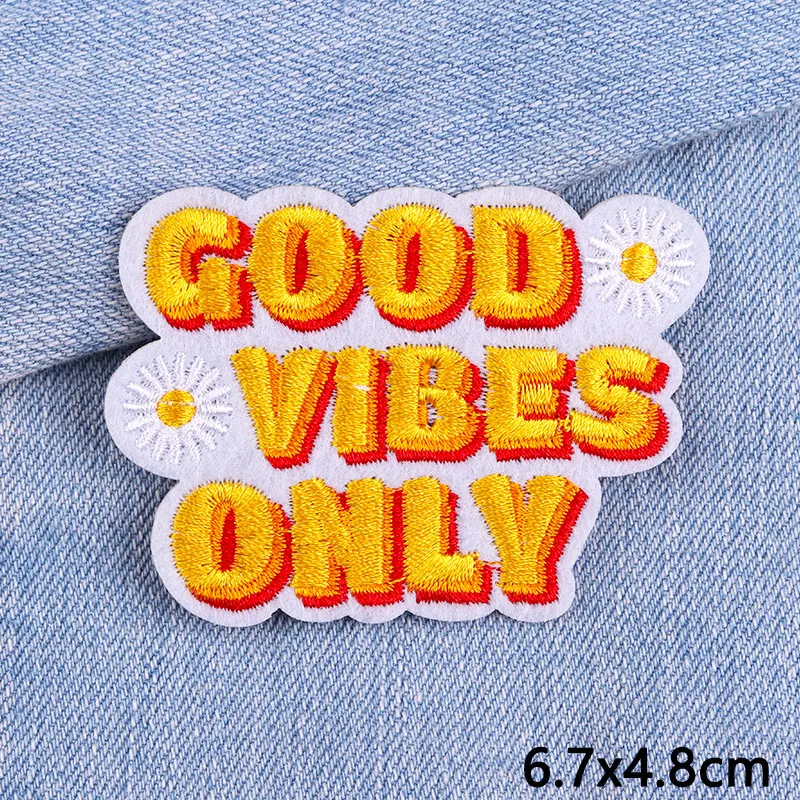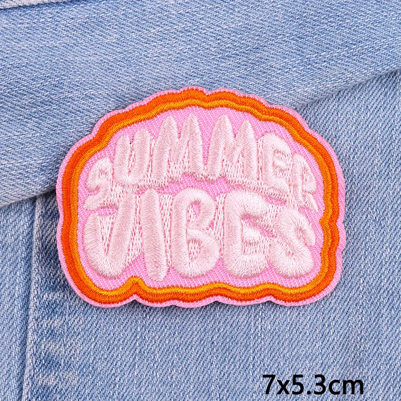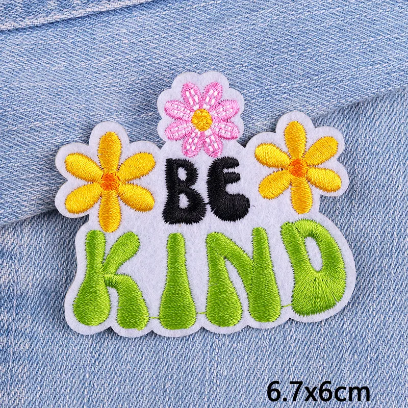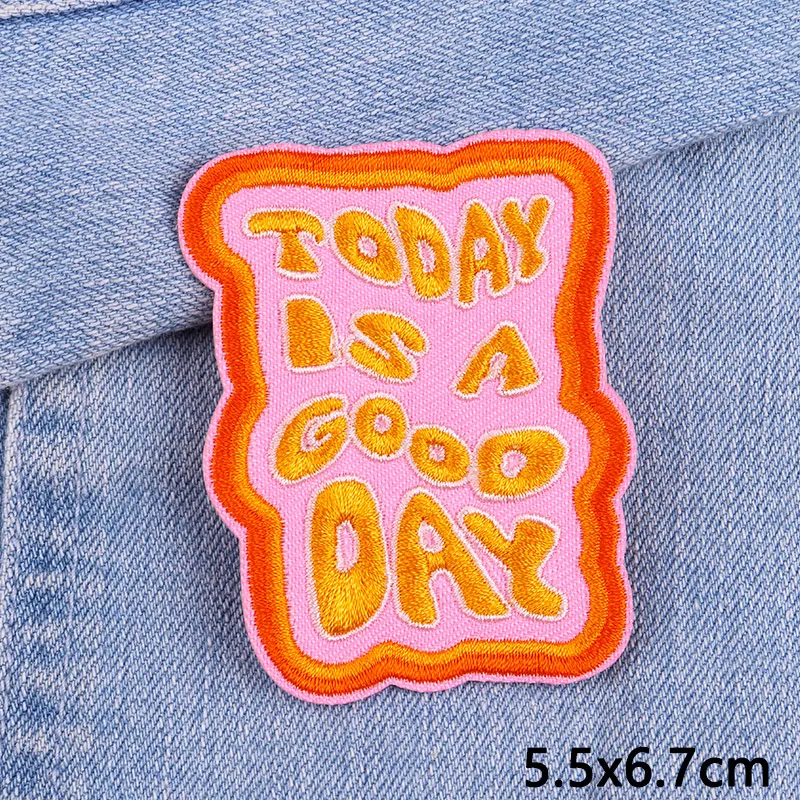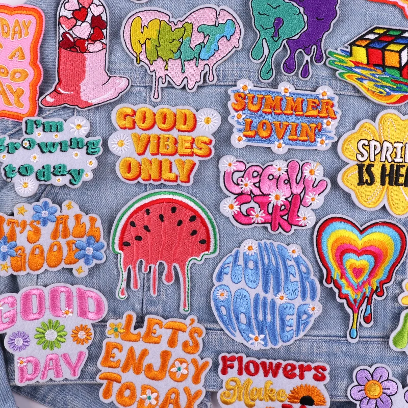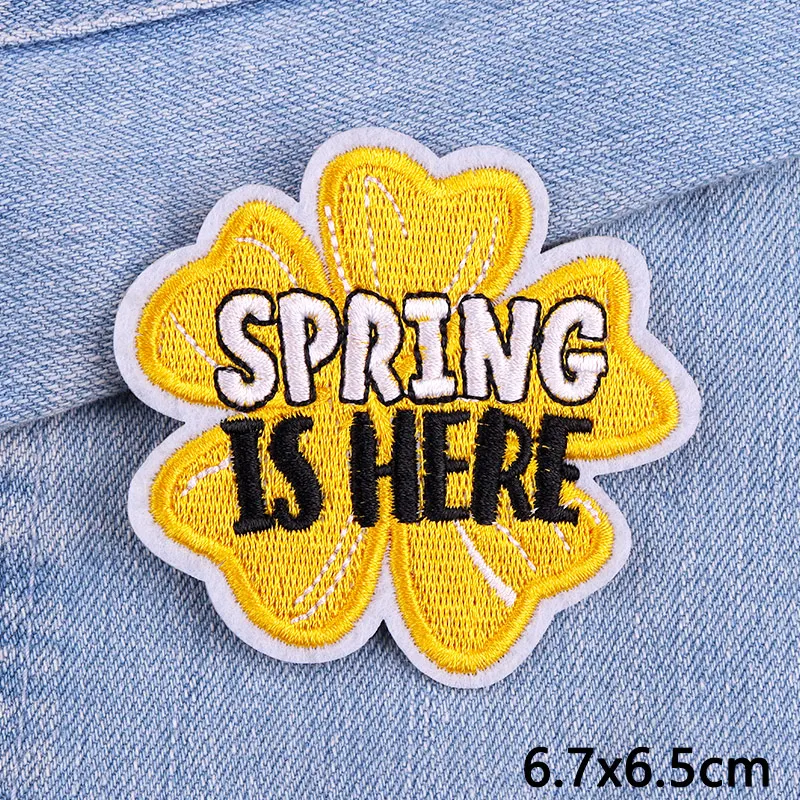 Parche bordado de margaritas/letras inglesas coloridas, parches de hierro para ropa, parches de dibujos animados para ropa, chaqueta, mochila, coser DIY