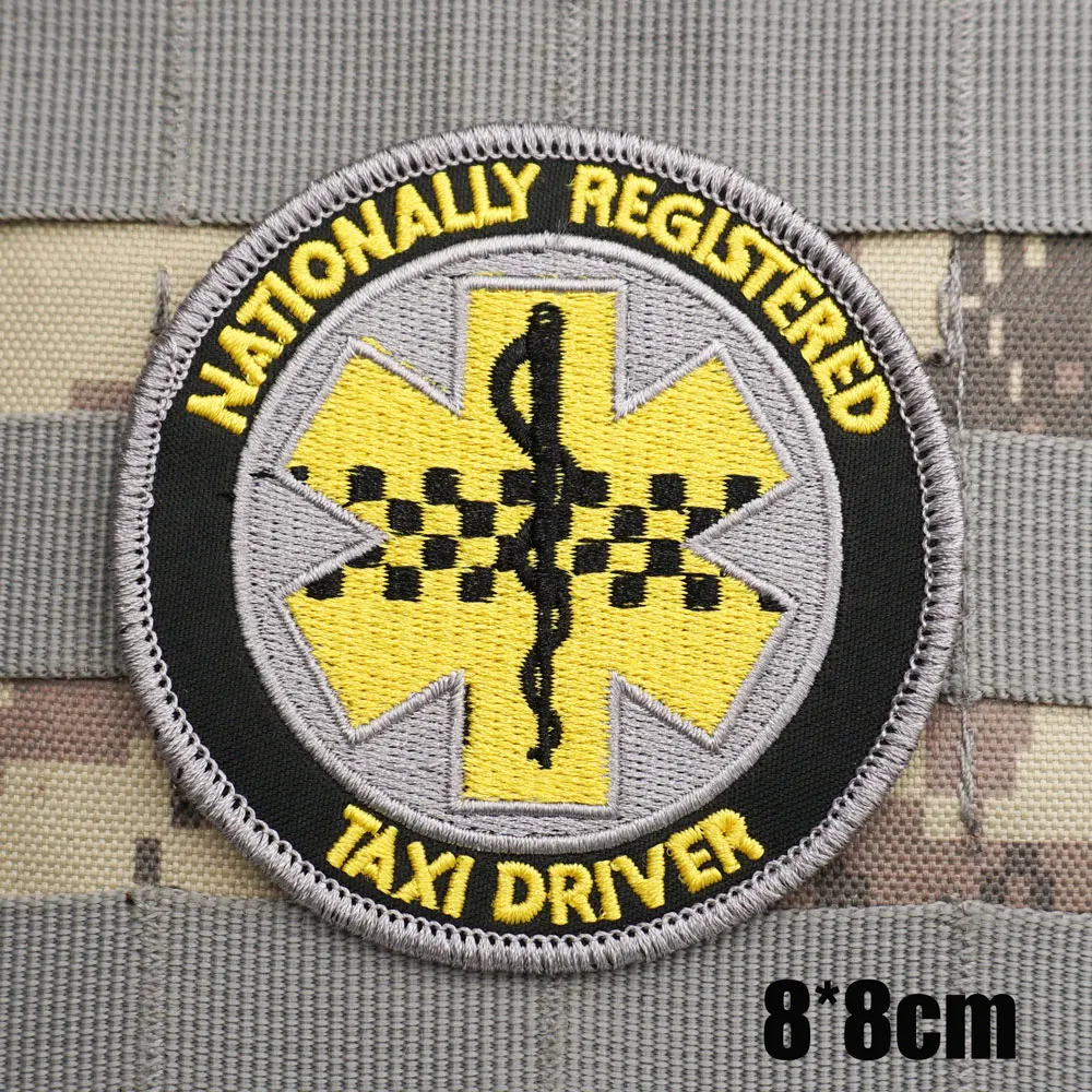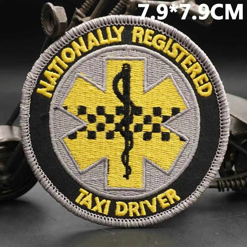 Parche bordado de conductor de Taxi certificado a nivel nacional, aplique de etiqueta de costura, banda de motorista punk, insignias de ropa de Rock con respaldo de gancho