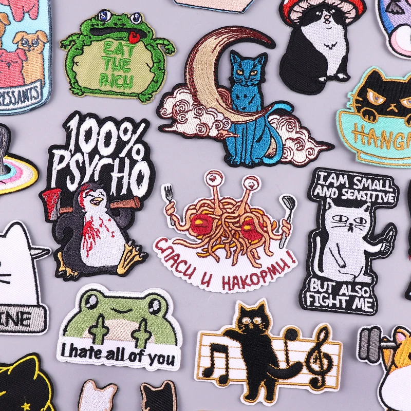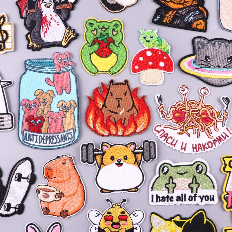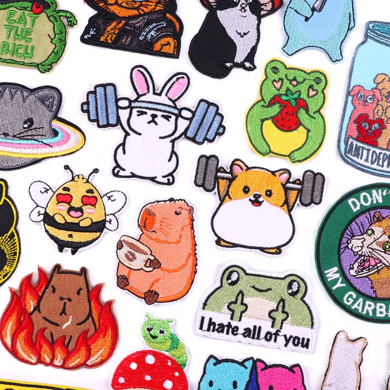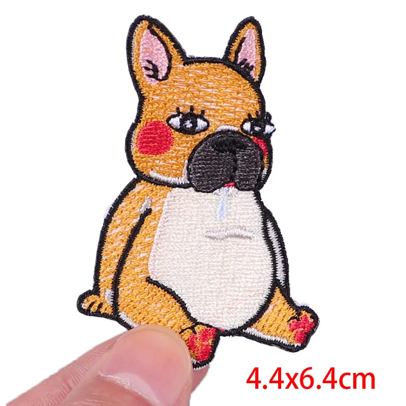 Parche bordado de conejo/Corgi para levantamiento de pesas, parche de dibujos animados/animales, parches termoadhesivos para planchar para ropa