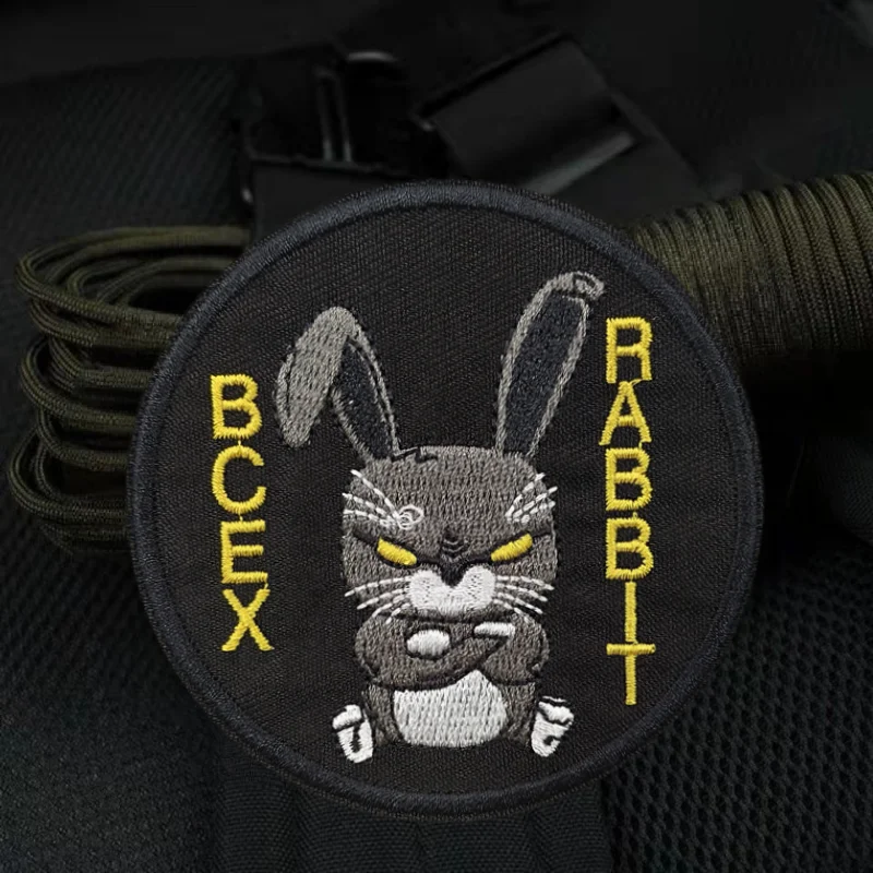 Parche bordado de conejo enojado, insignia militar divertida con gancho y bucle, insignia de moral táctica, parches adhesivos decorativos para ropa