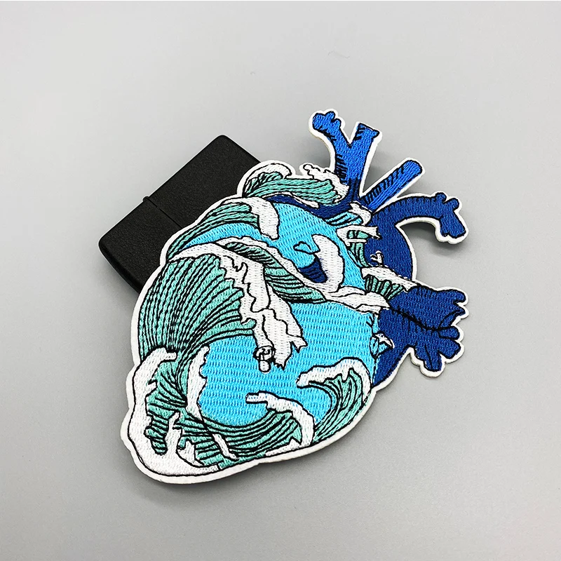 1. Ponga el parche en su tela, con el lado bordado hacia arriba