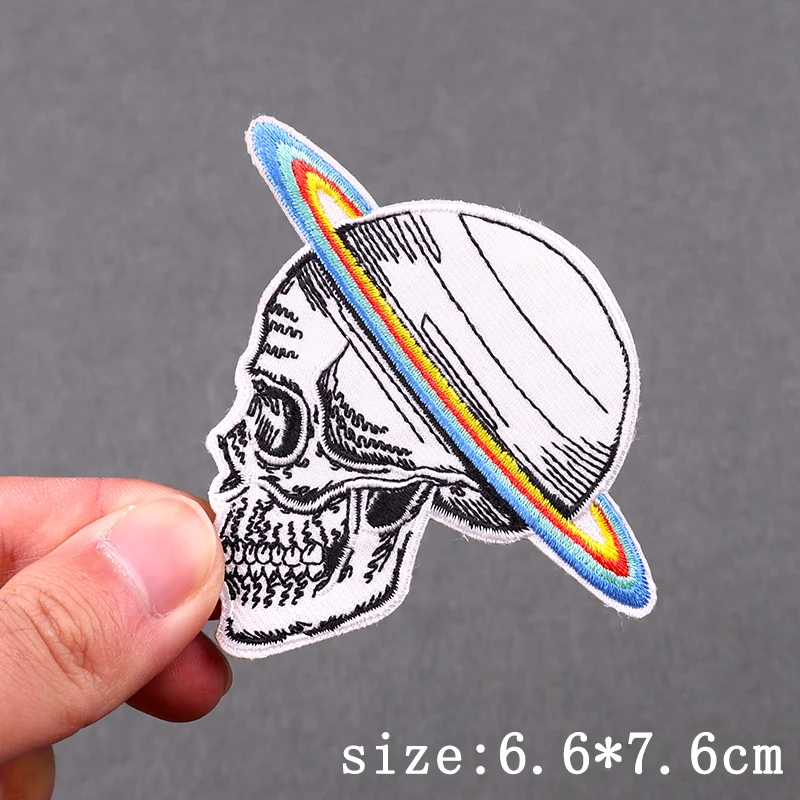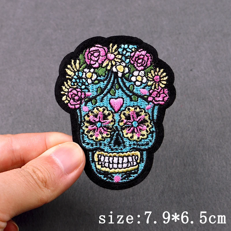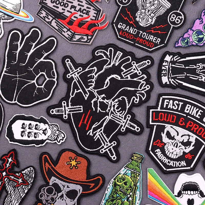 Parche bordado de corazón, parches termoadhesivos para ropa, costura de calavera Punk/pegatinas de parche fuselables