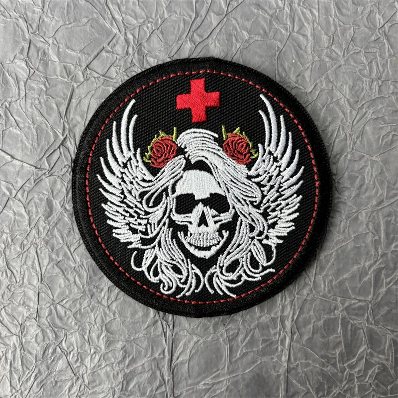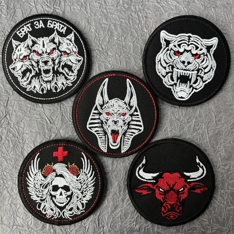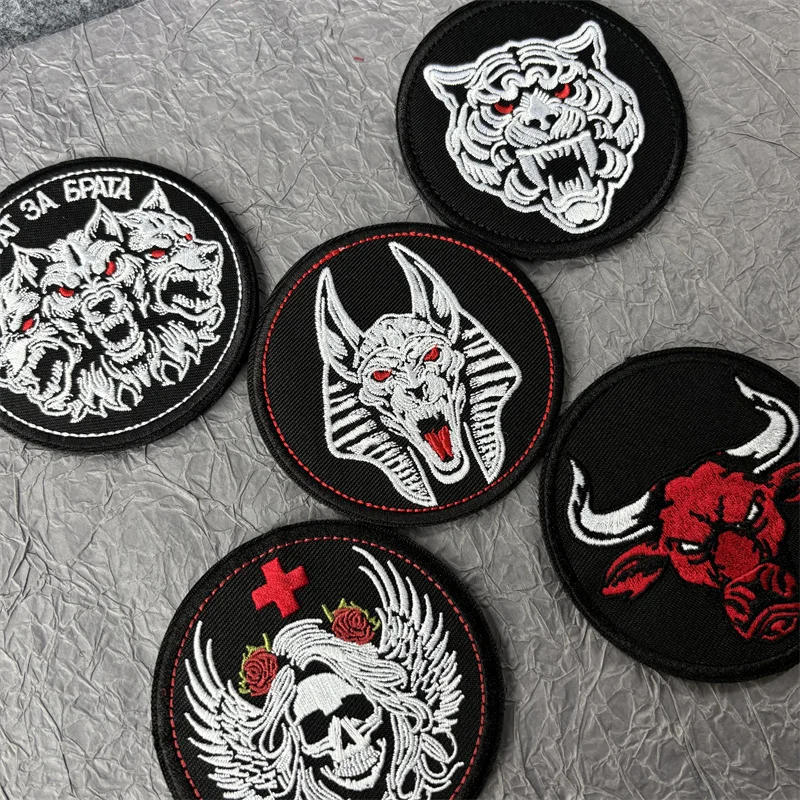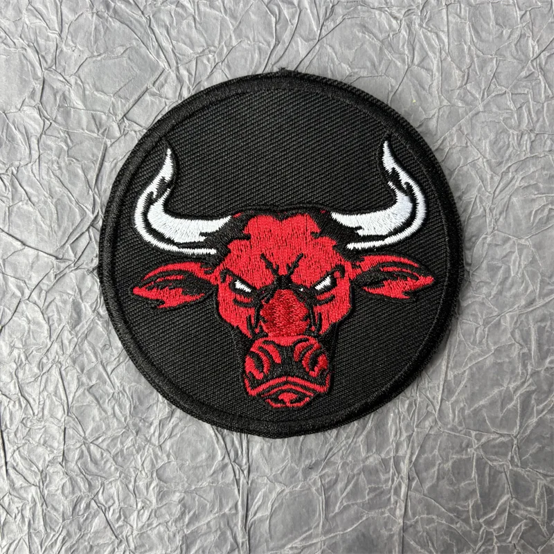 Parche bordado Red Bullfight para ropa, insignia táctica de moral de lobo, bucle de gancho, parches militares de calavera, pegatinas para mochila