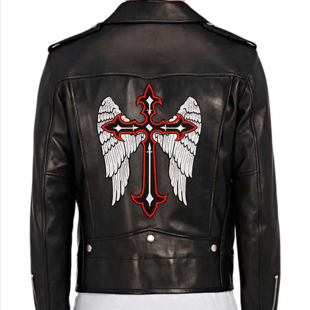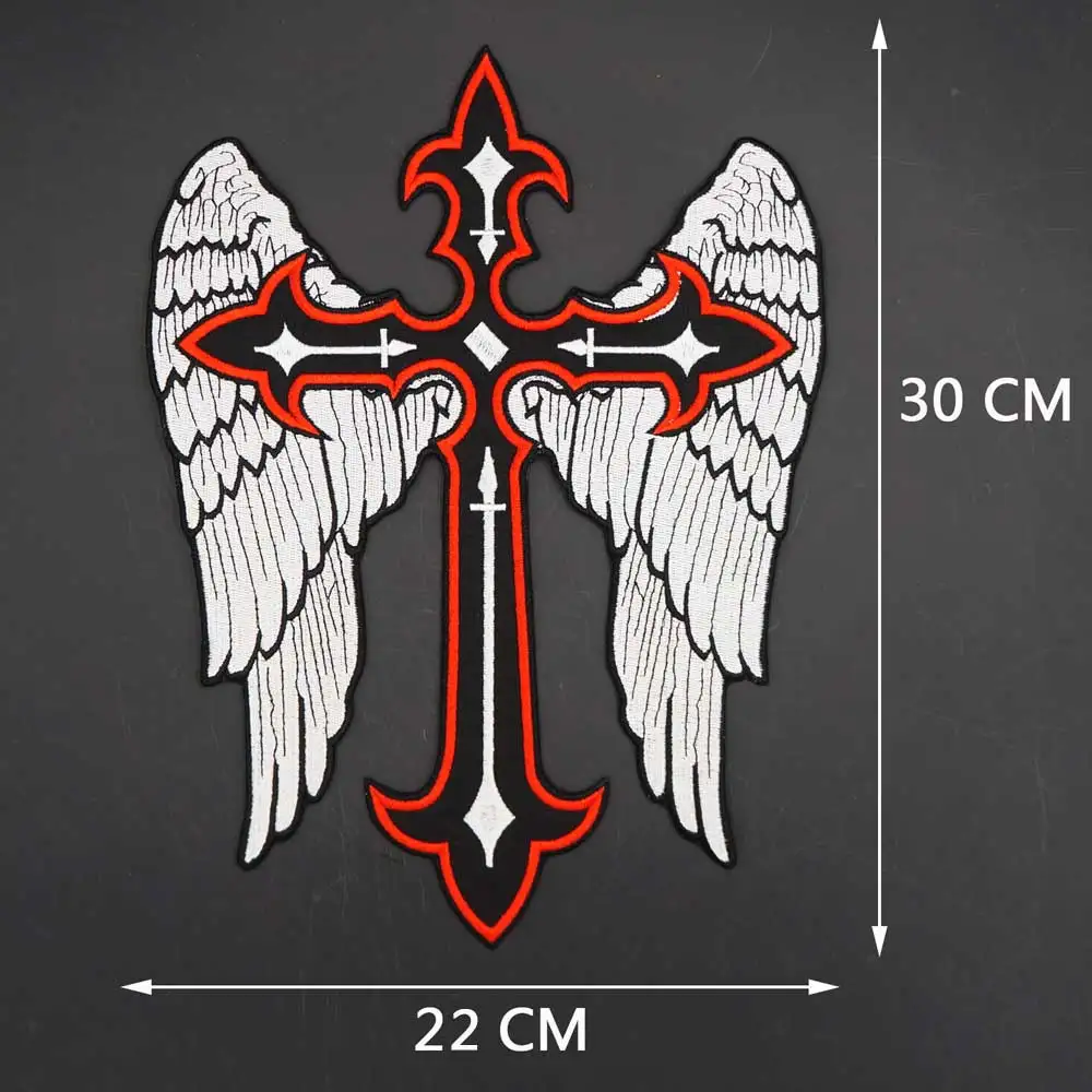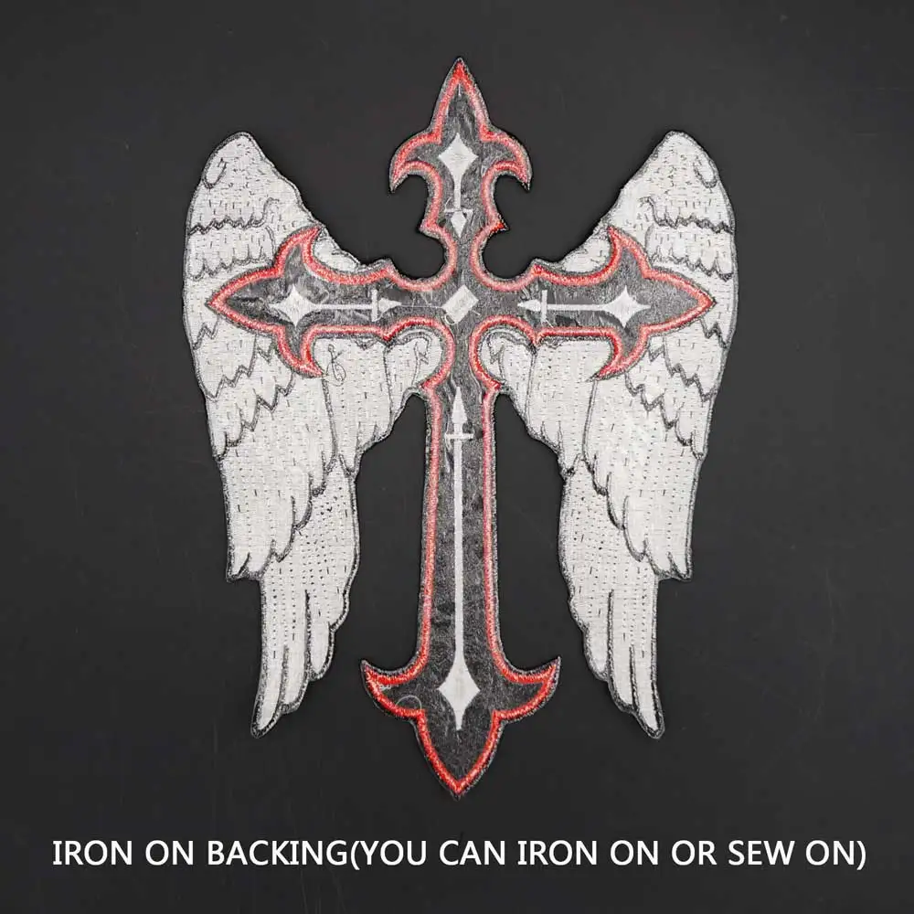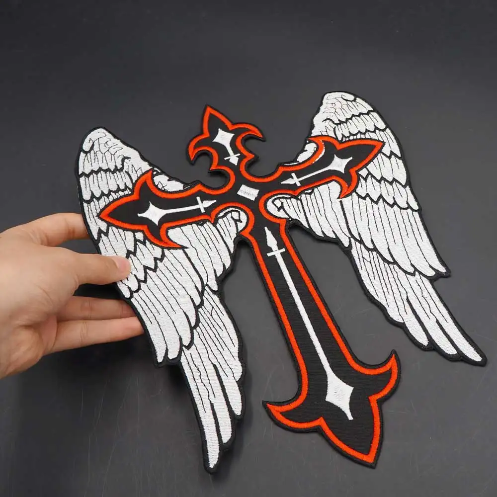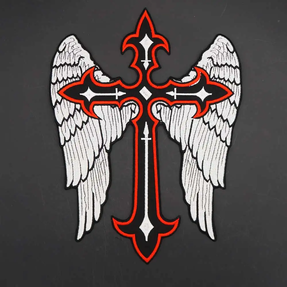 Parche bordado cristiano con alas cruzadas, parches de motorista para jinete, ropa, chaqueta, planchado, respaldo