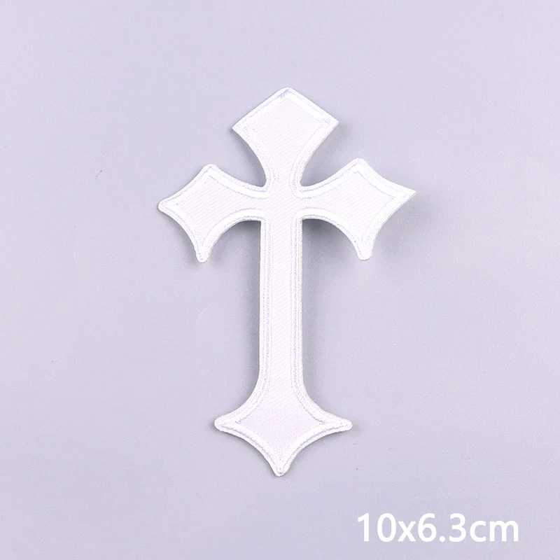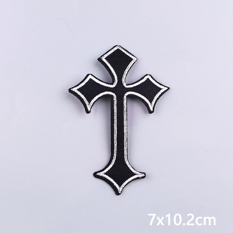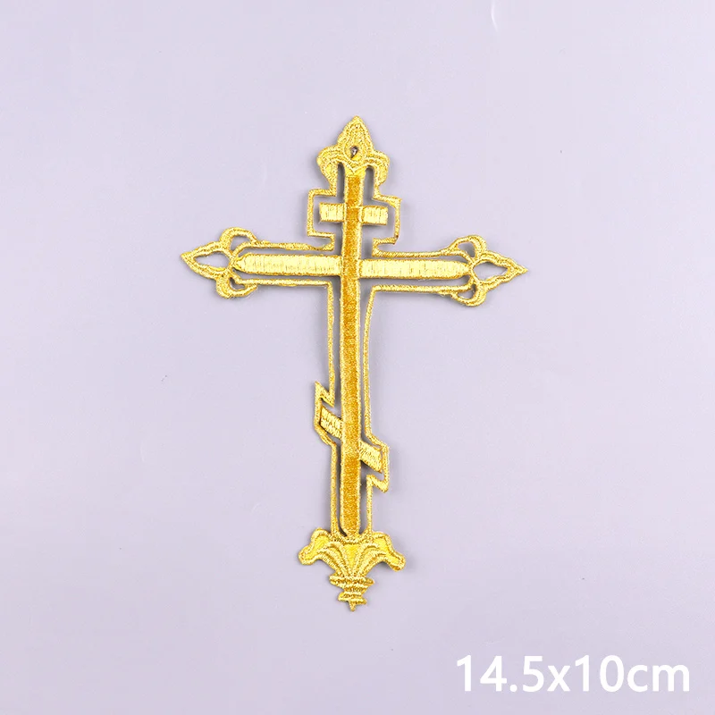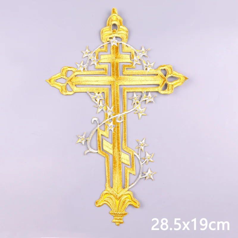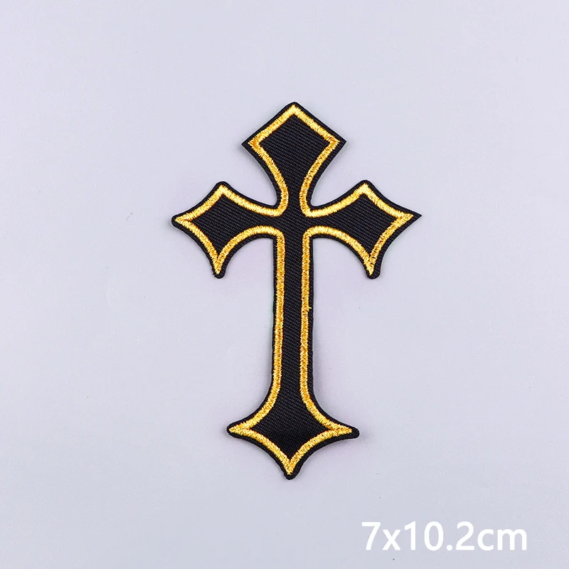 Parche bordado de Cruz de Jesús para ropa, parches de hierro con Cruz dorada y plateada para ropa, apliques de personalidad, decoración artesanal