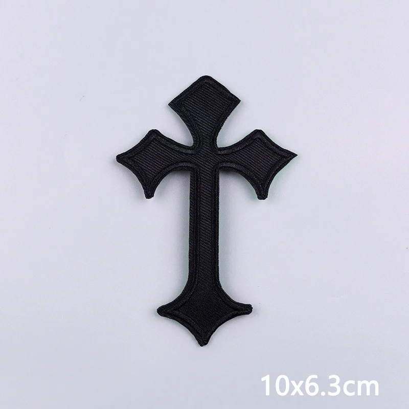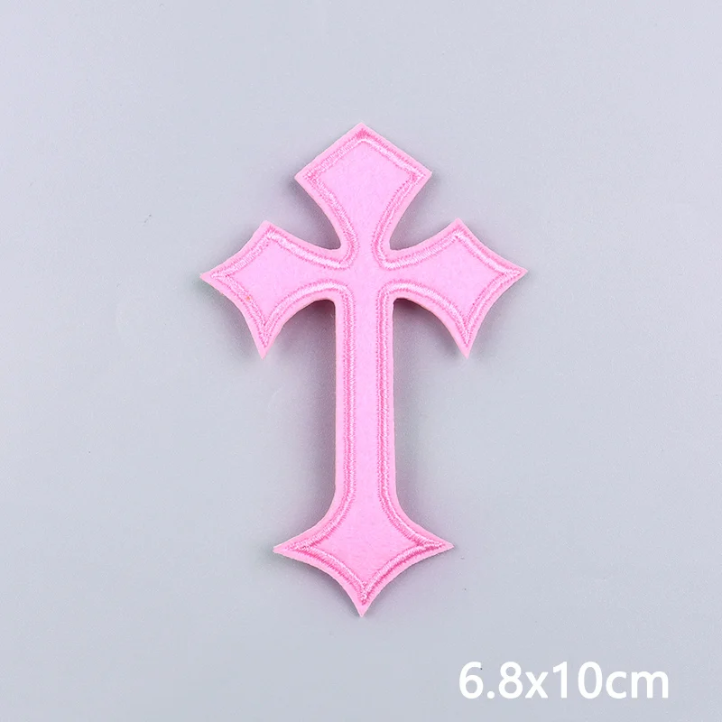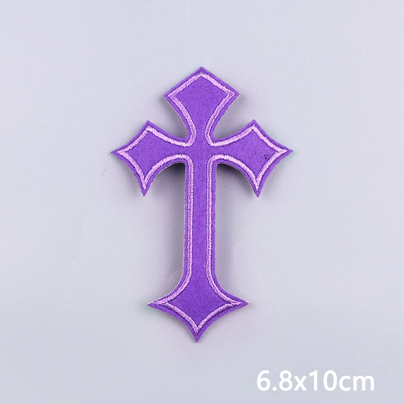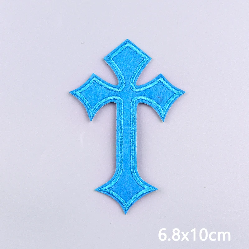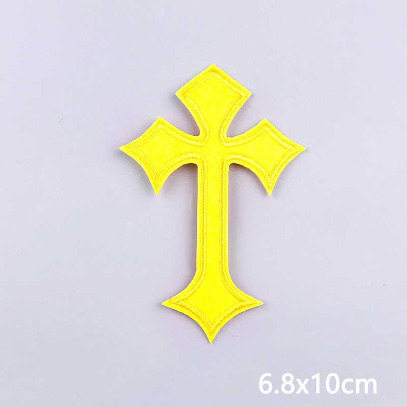 Parche bordado de Cruz de Jesús para ropa, parches de hierro con Cruz dorada y plateada para ropa, apliques de personalidad, decoración artesanal