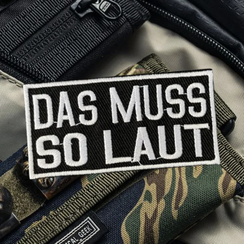 "DAS MUSS SO LAUT" Parche bordado Chaleco táctico Gancho y bucle Insignia de moral Mochila Etiqueta decorativa Parches para brazalete para ropa