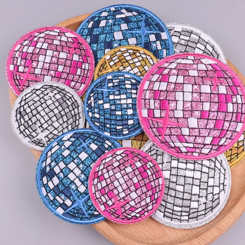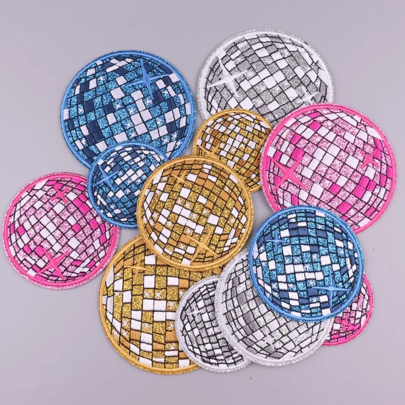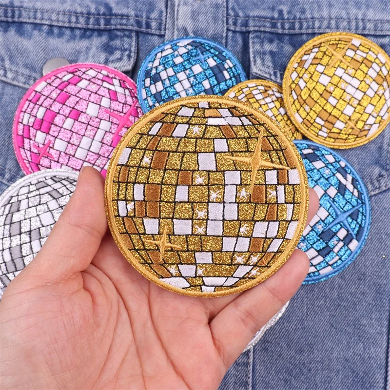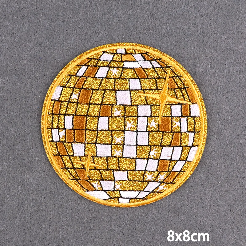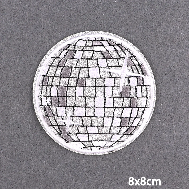 Parche bordado para decoración de fiesta de bola de discoteca para ropa, parches termoadhesivos, parches para planchar en la ropa, pegatinas para coser