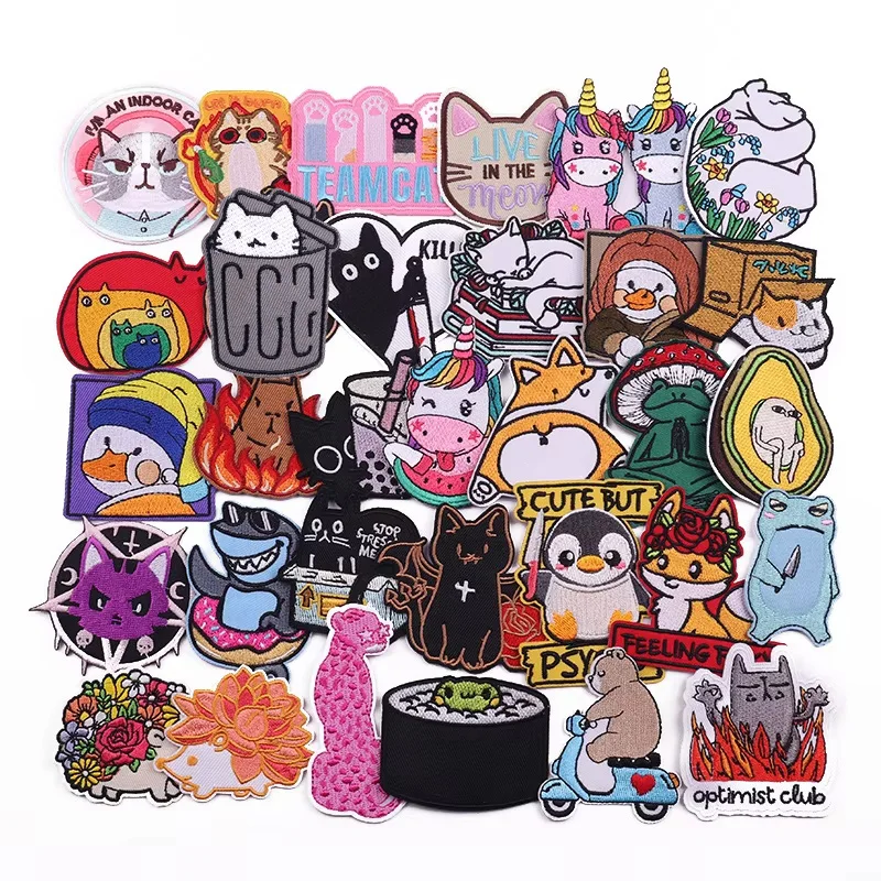 Parche bordado de dibujos animados aguacate y gatos, parches para planchar para ropa, parches termoadhesivos para ropa, pegatinas para planchar de animales