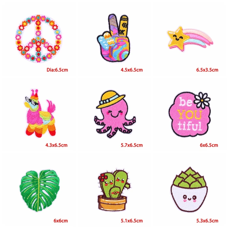 10 unids/lote parche bordado de dibujos animados/arcoíris DIY parche de Animal lindo hierro en parches para ropa parches termoadhesivos en la ropa