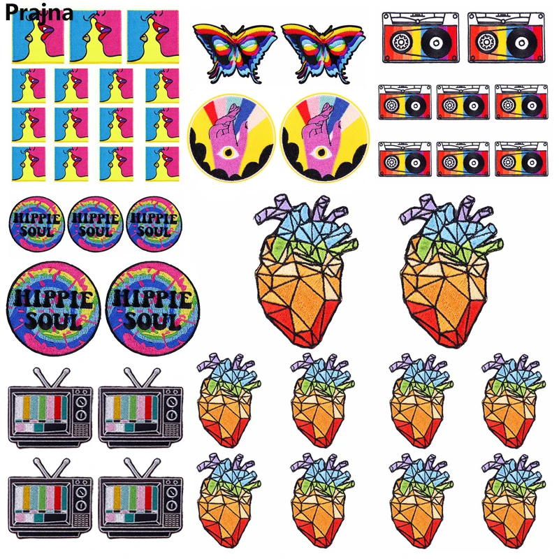 Parche bordado de dibujos animados, cinta de TV con corazón, parches para planchar, parches de letras para ropa, chaquetas, pegatinas de costura, 10 unids/lote