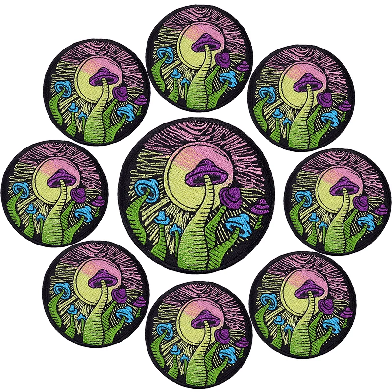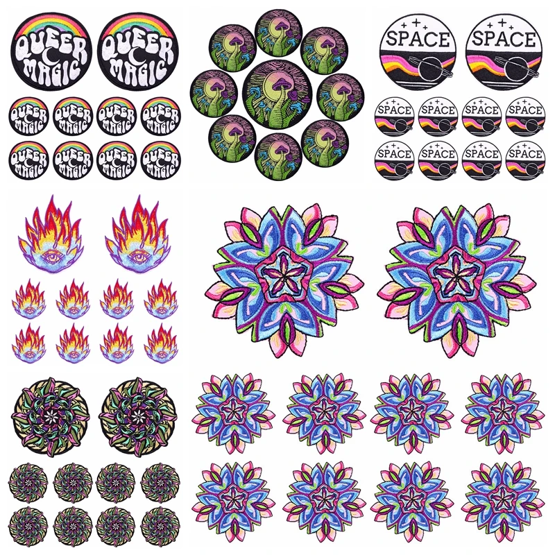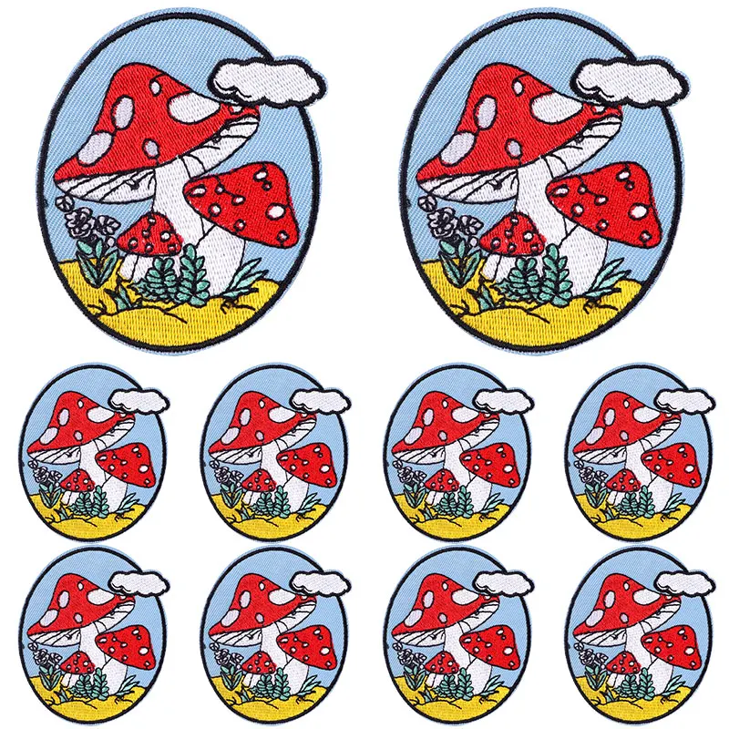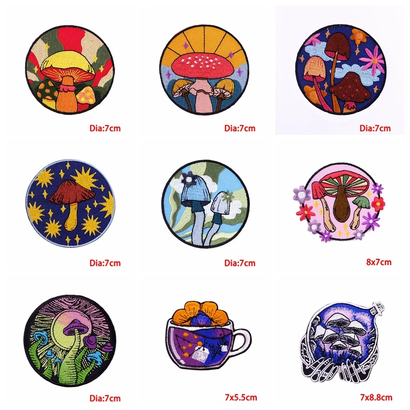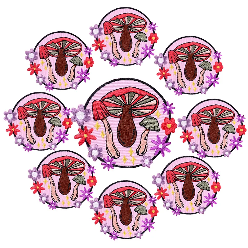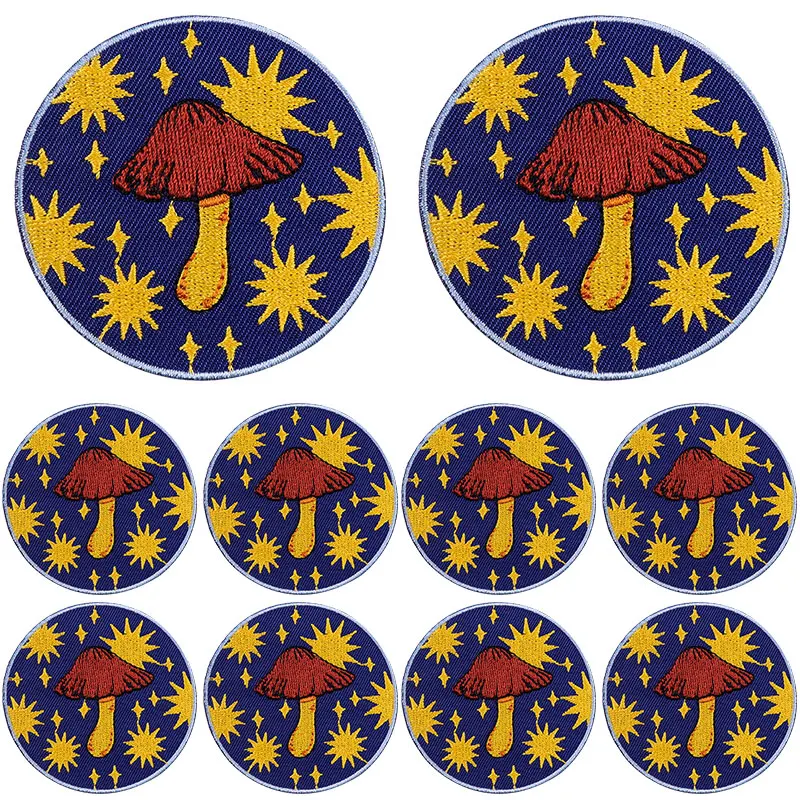 Parche bordado de dibujos animados Datura, flores, seta, parches para planchar, bricolaje, arcoíris para ropa, pegatinas para coser, 10 unids/lote