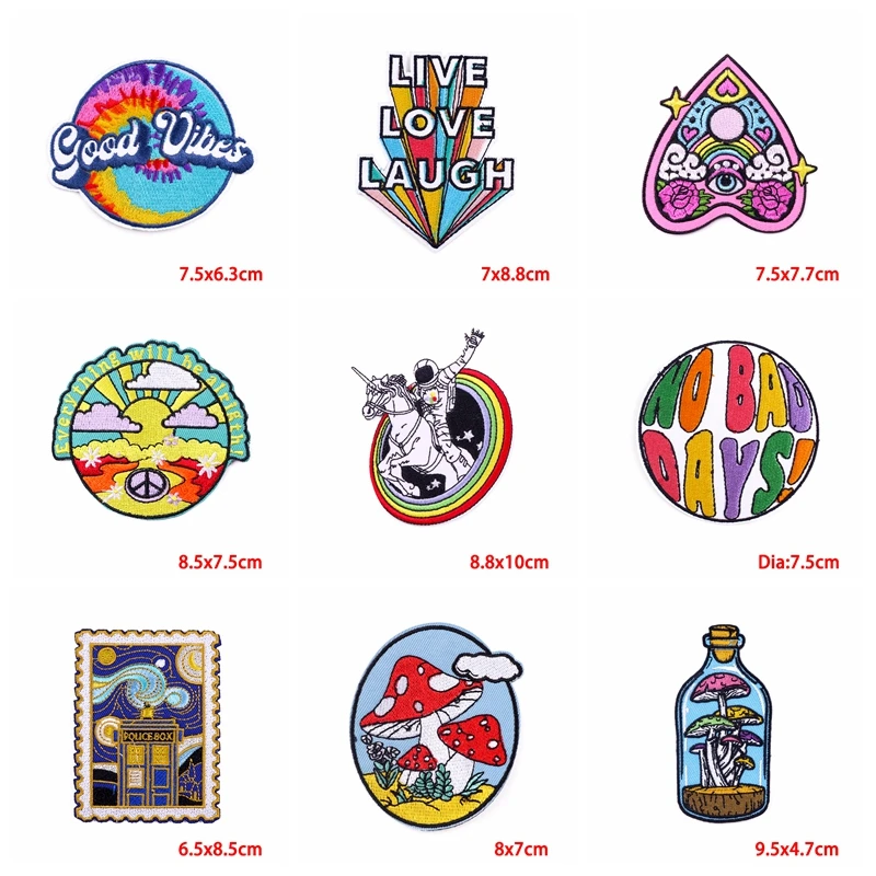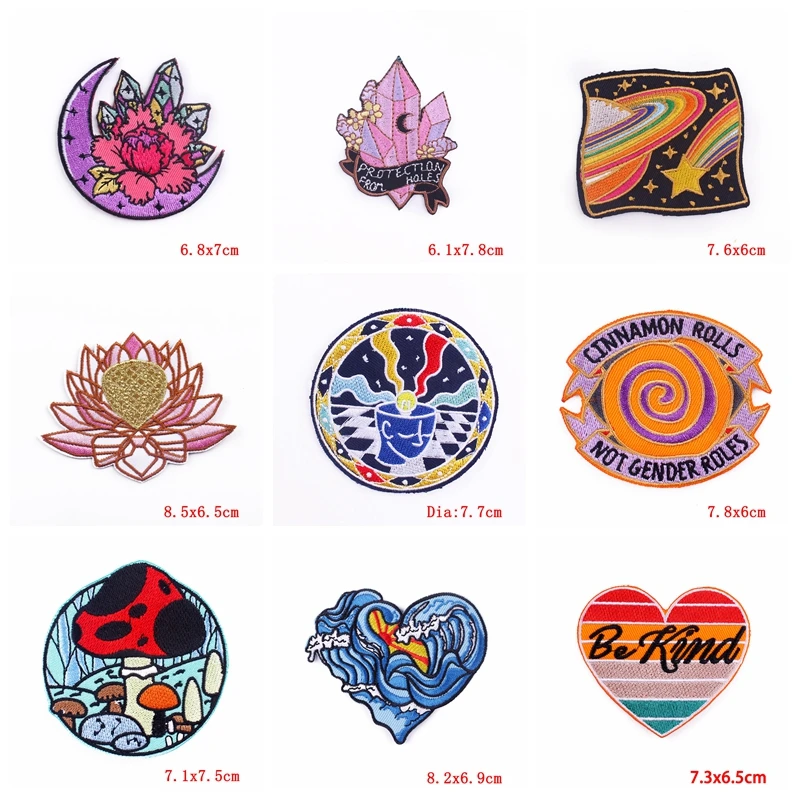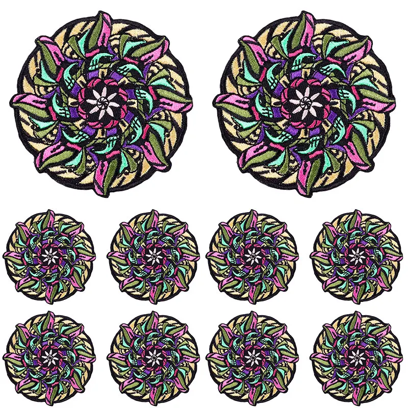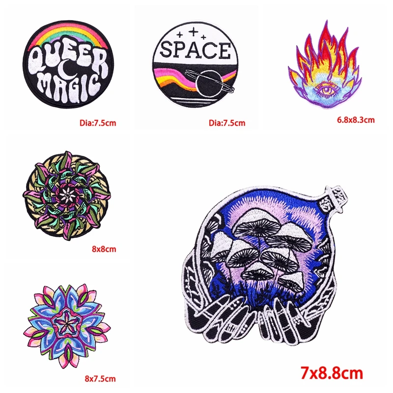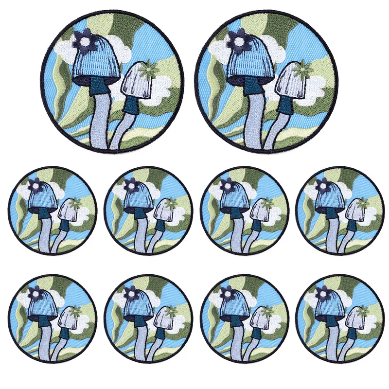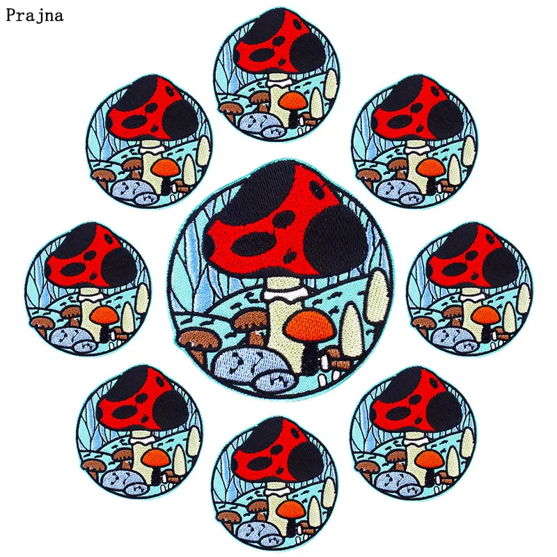 Parche bordado de dibujos animados Datura, flores, seta, parches para planchar, bricolaje, arcoíris para ropa, pegatinas para coser, 10 unids/lote