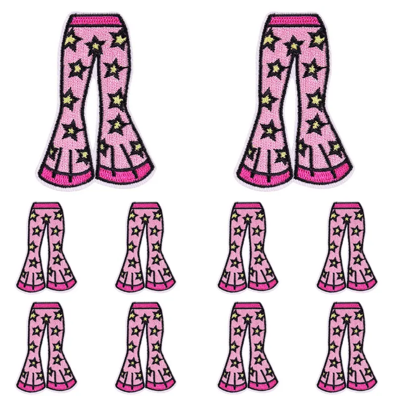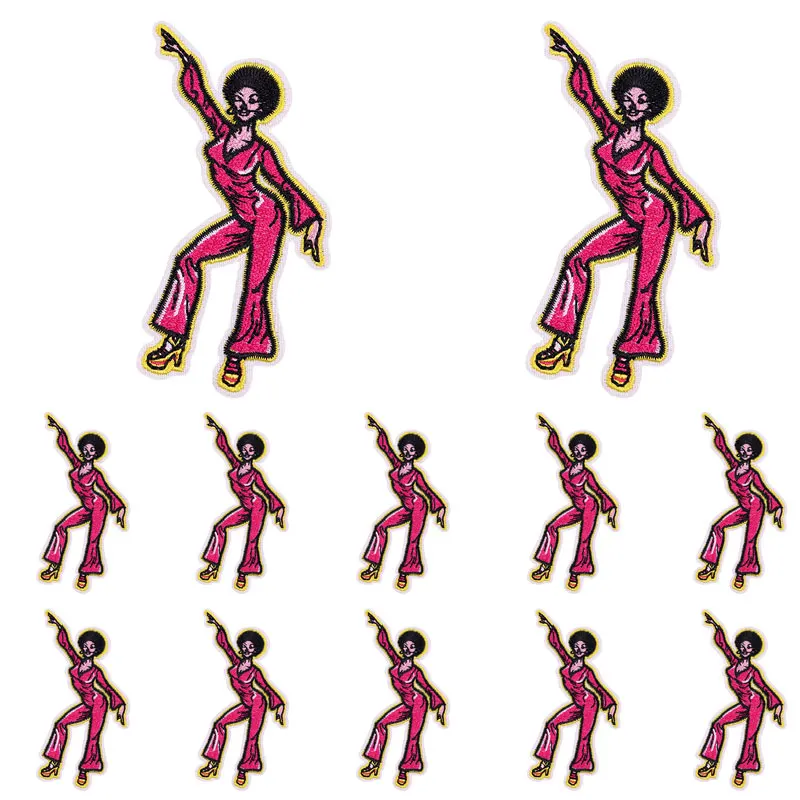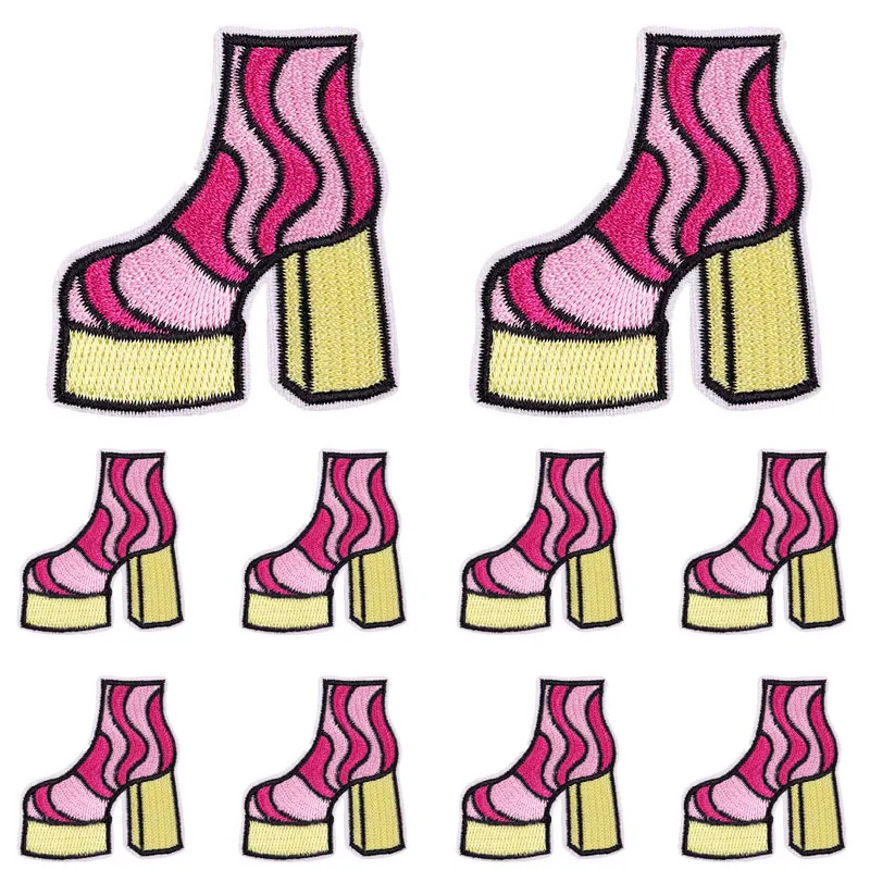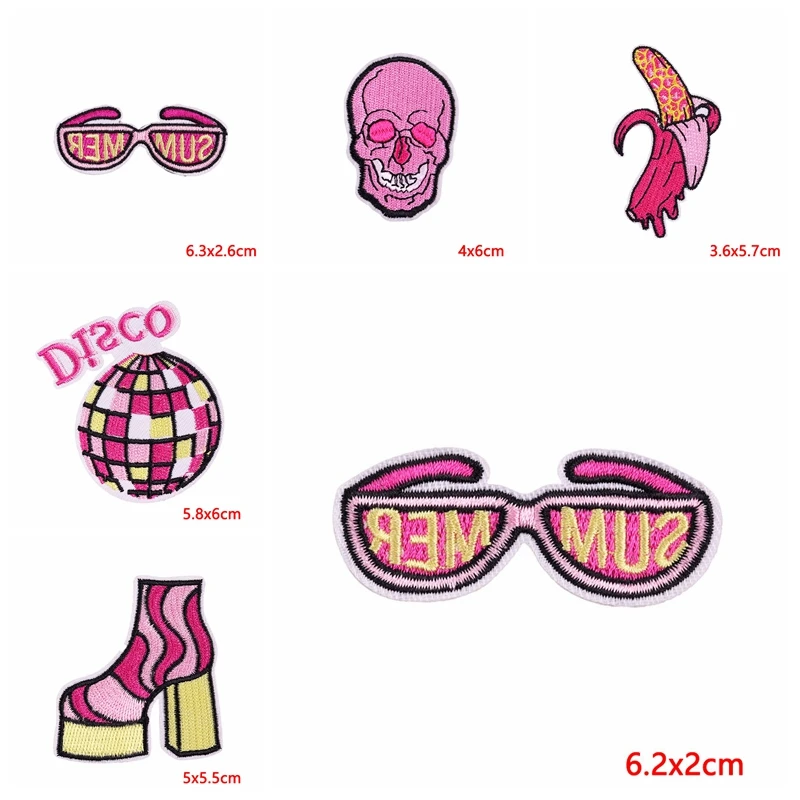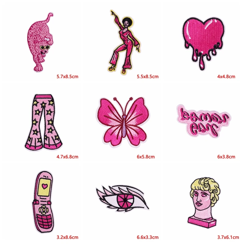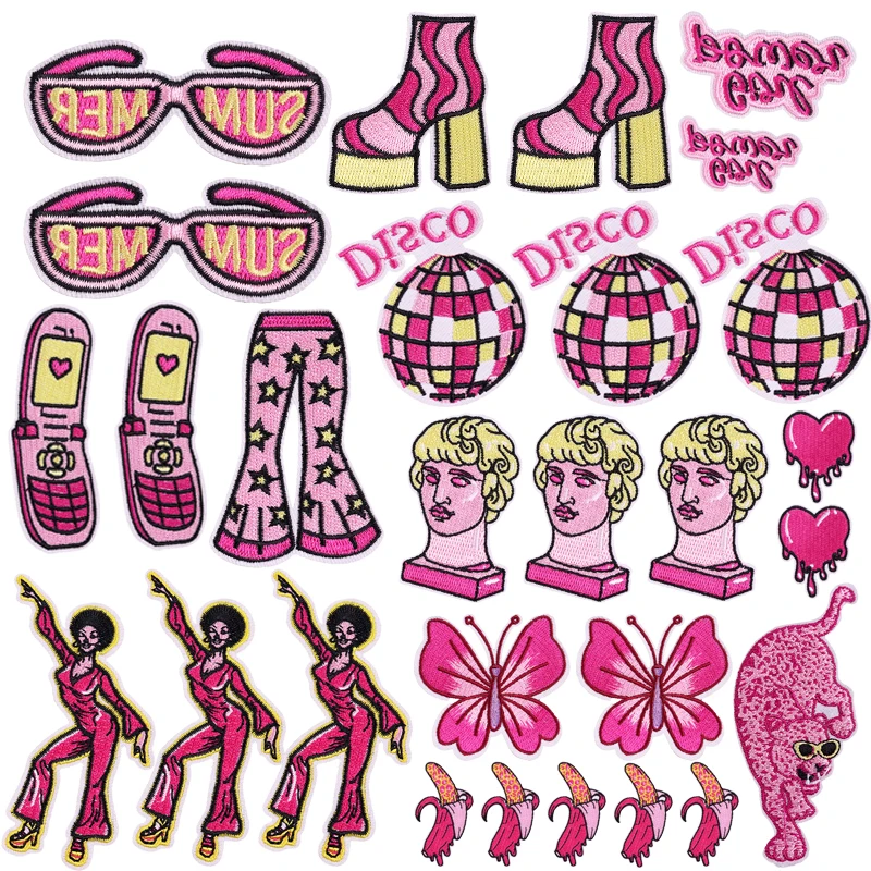Parche de estilo rosa de dibujos animados de 5 piezas, parche bordado de tacón alto de discoteca para niña rosa, parches de hierro para ropa, coser DIY