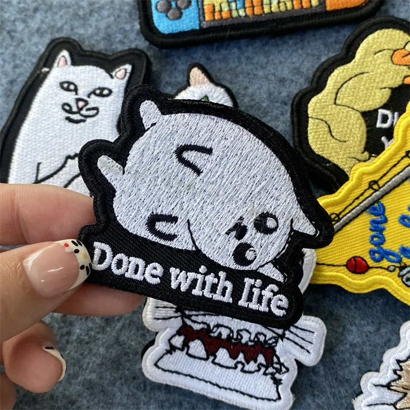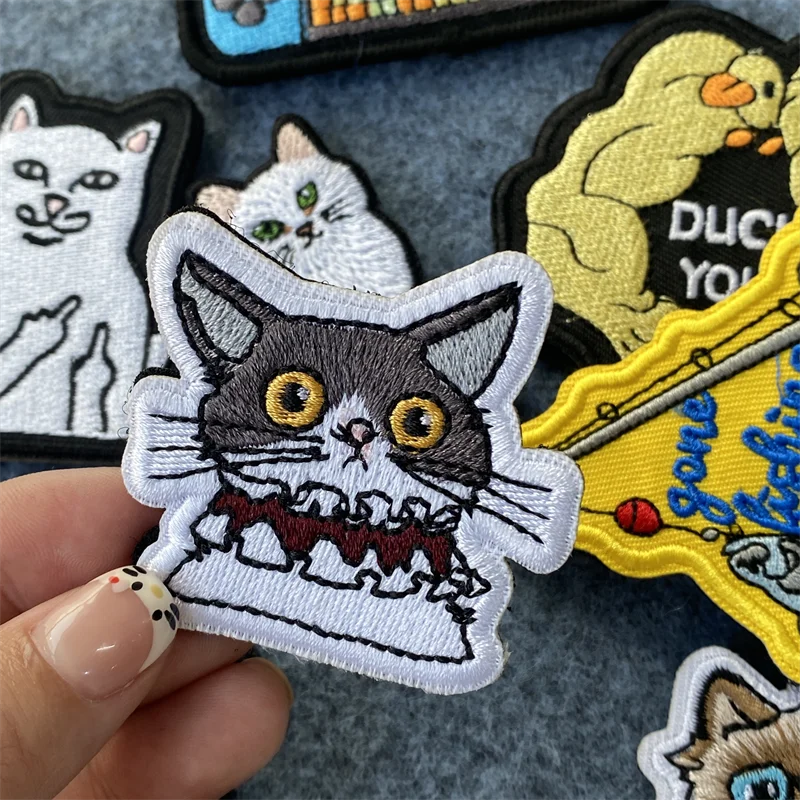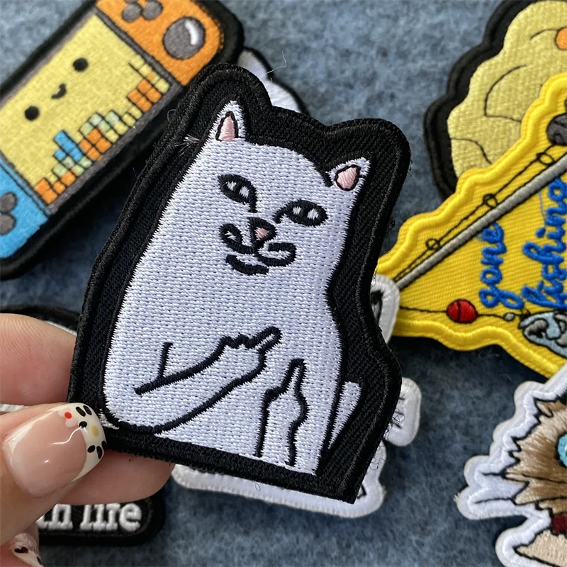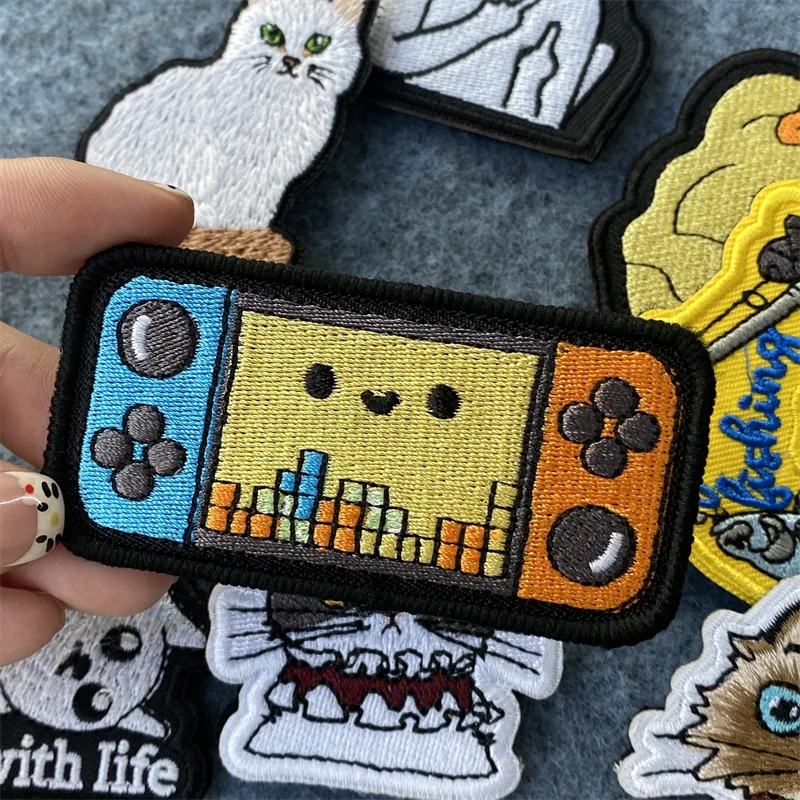 Cute Cartoon Embroidered Patch Kitten Morale Badge Game Machine Fish Hook and Loop Armband Backpack Clothes Decorative Stickers