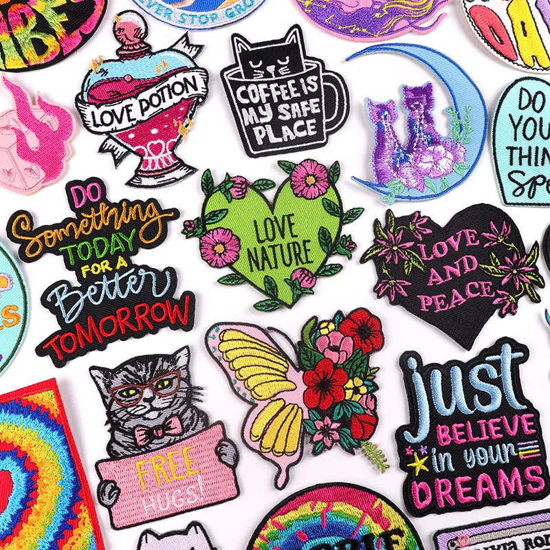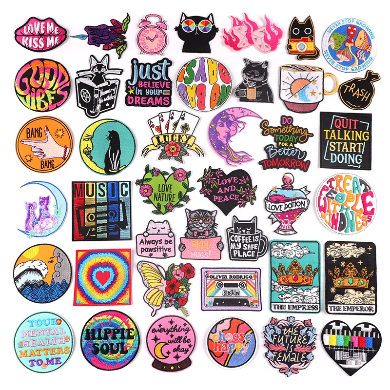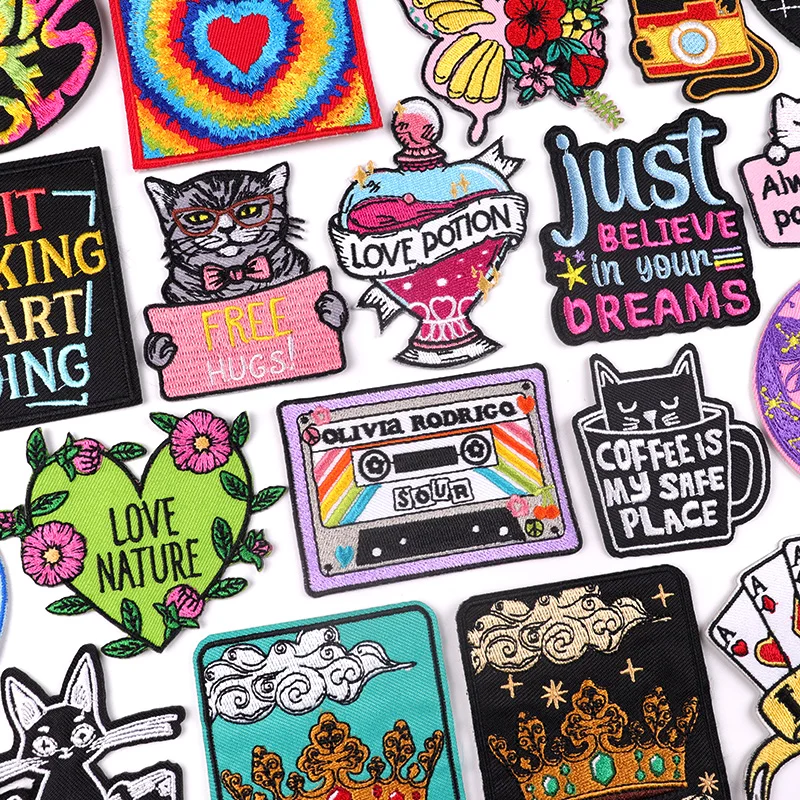 Parche bordado de dibujos animados/letras, parche de animales, parches para planchar, parches DIY para coser mariposas y gatos, apliques para ropa, pegatina para planchar