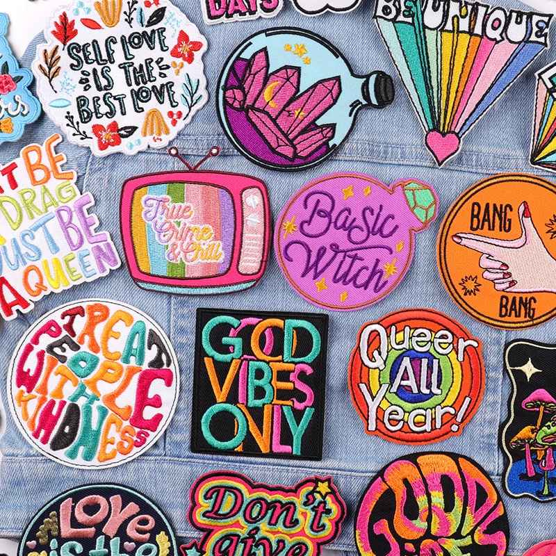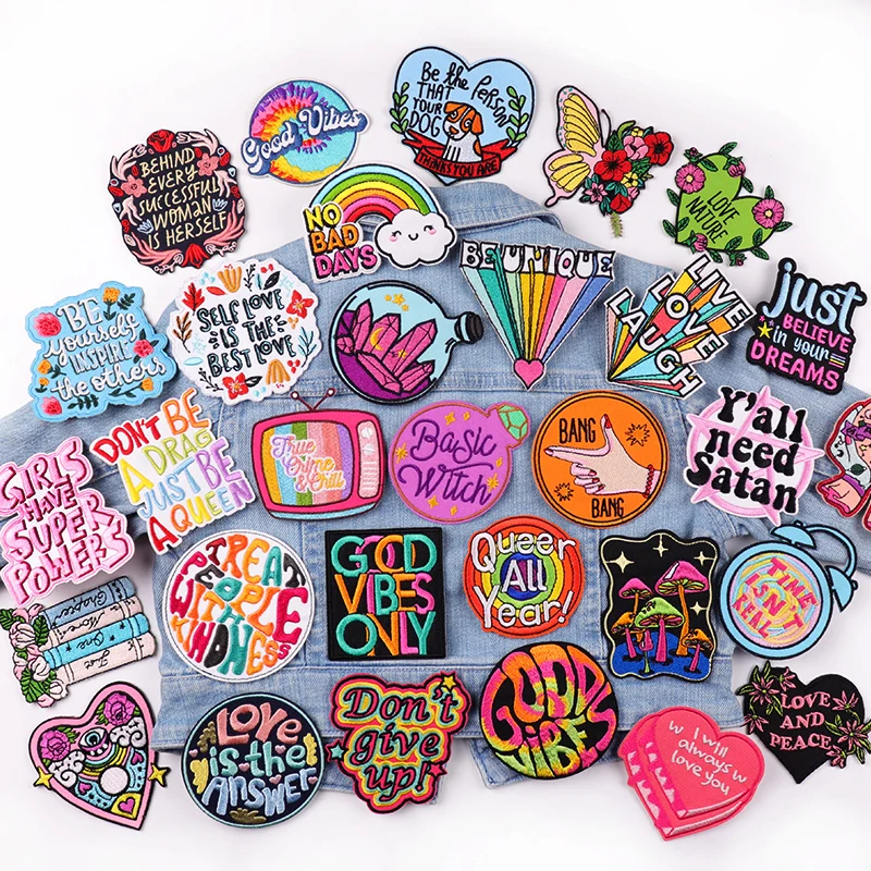 Parche bordado de dibujos animados/letras, parches para planchar DIY para ropa, parches bordados con letras de arcoíris en ropa, pegatina para coser