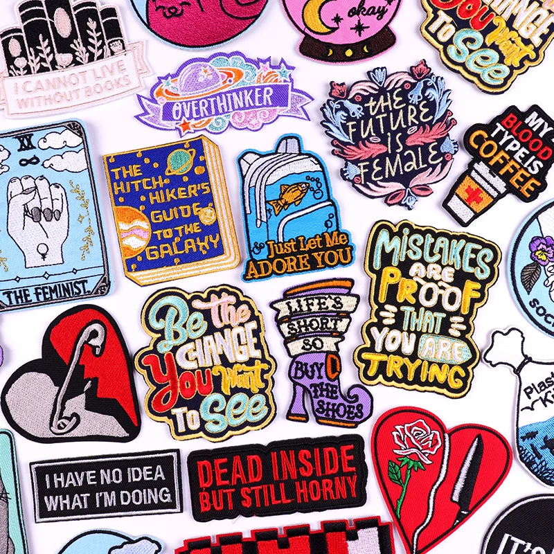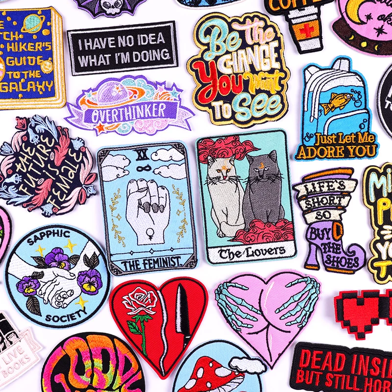 Parche Bordado de Dibujos Animados, Parche con Letras Motivadoras, Parches Bordados de Hierro para Ropa, Parches de Flores con Letras, Bricolaje
