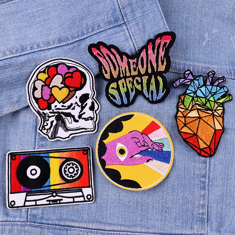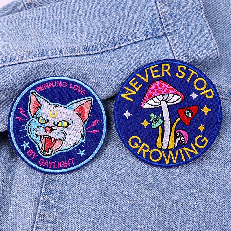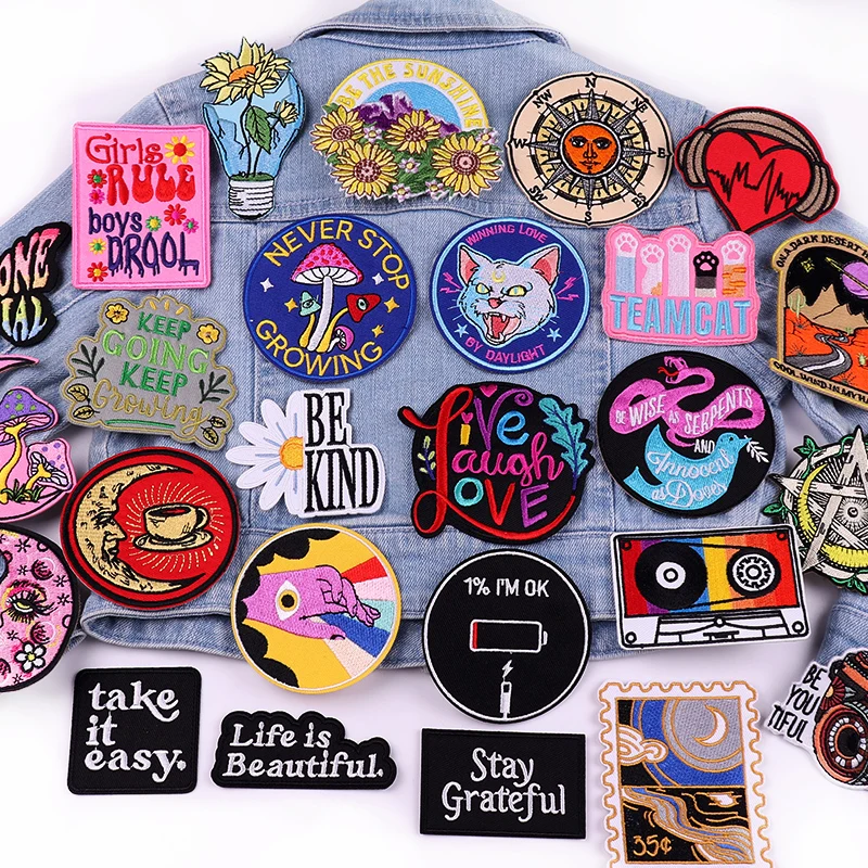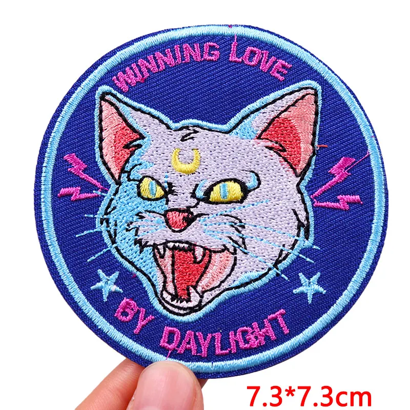 Parche bordado de dibujos animados, parche con letras de gato/arcoíris de animales, parches para planchar para ropa, parches termoadhesivos para ropa, Jean DIY