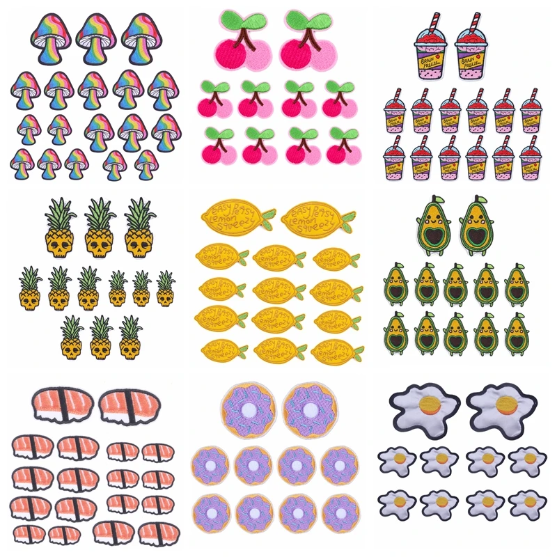 Parche bordado de dibujos animados, parche termoadhesivo para planchar en la ropa, pegatinas para coser alimentos y frutas, 10 unids/lote