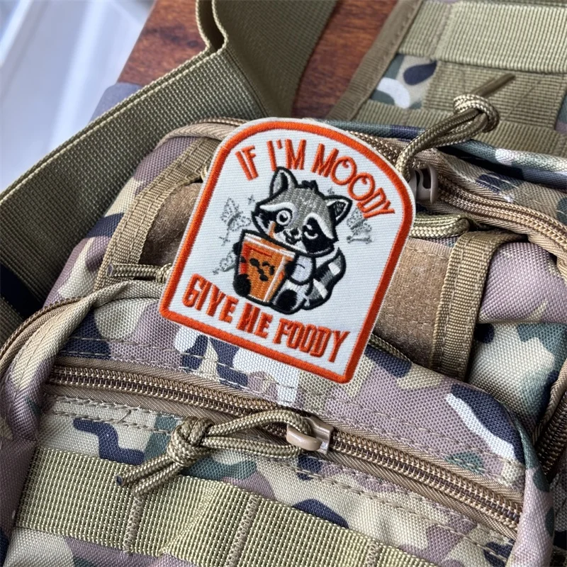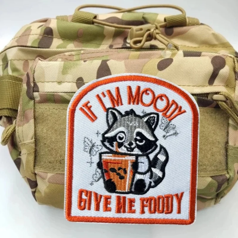 Parche bordado de dibujos animados "raccoon" en ropa, lazo de gancho, insignia táctica de moral de Animal, parches, pegatina para mochila, brazalete