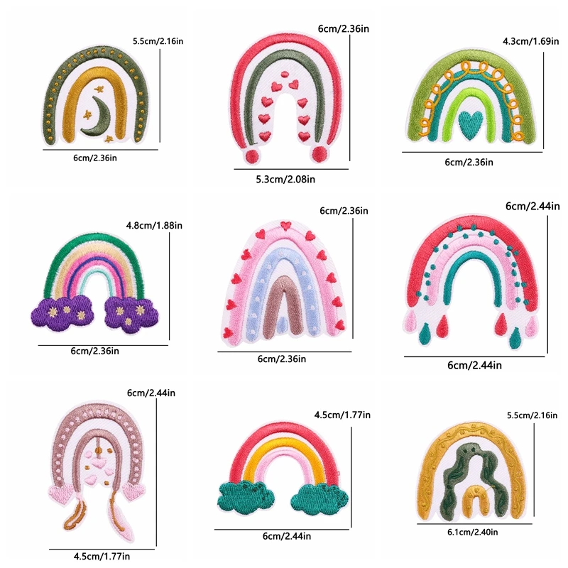 Parche bordado de dibujos animados a rayas de 10, accesorios para manuales, Parche de arcoíris, parches para planchar para ropa, pegatinas para coser, insignia