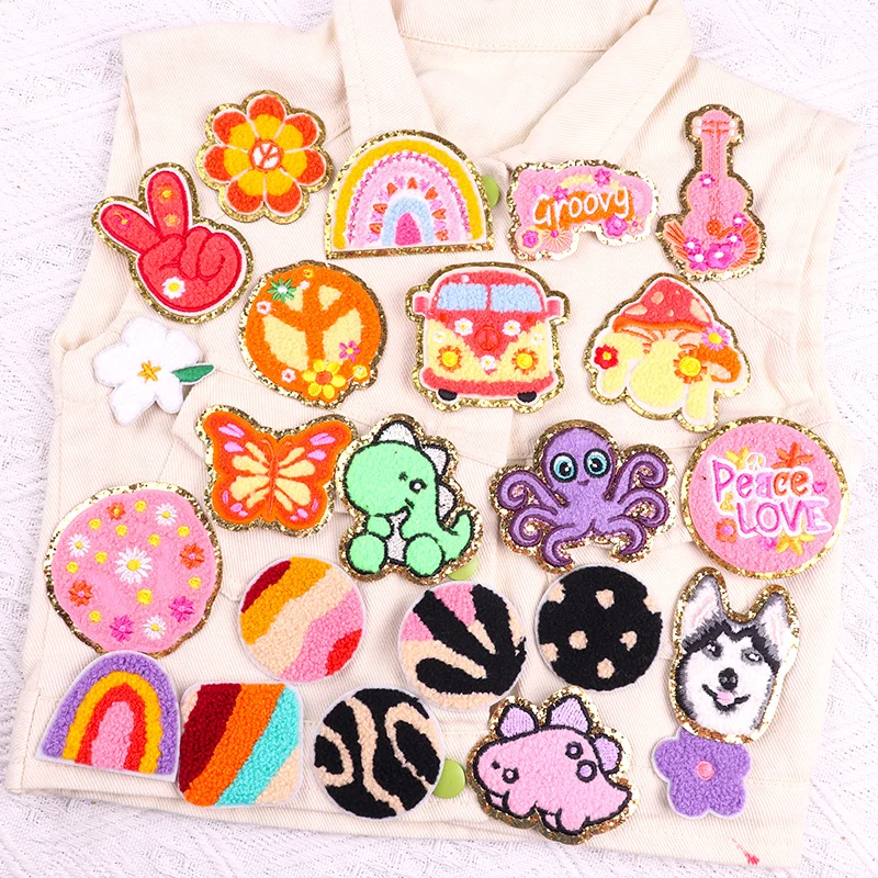 Parche bordado de dibujos animados para ropa, parches de chenilla con letras de animales, parches de planchado de alta calidad para decoración de Jeans, nuevo
