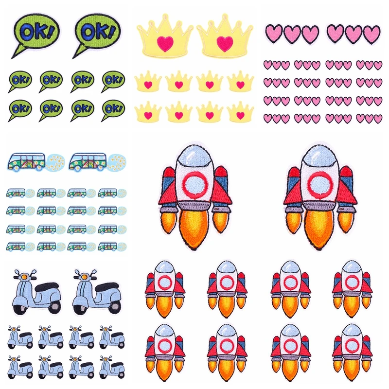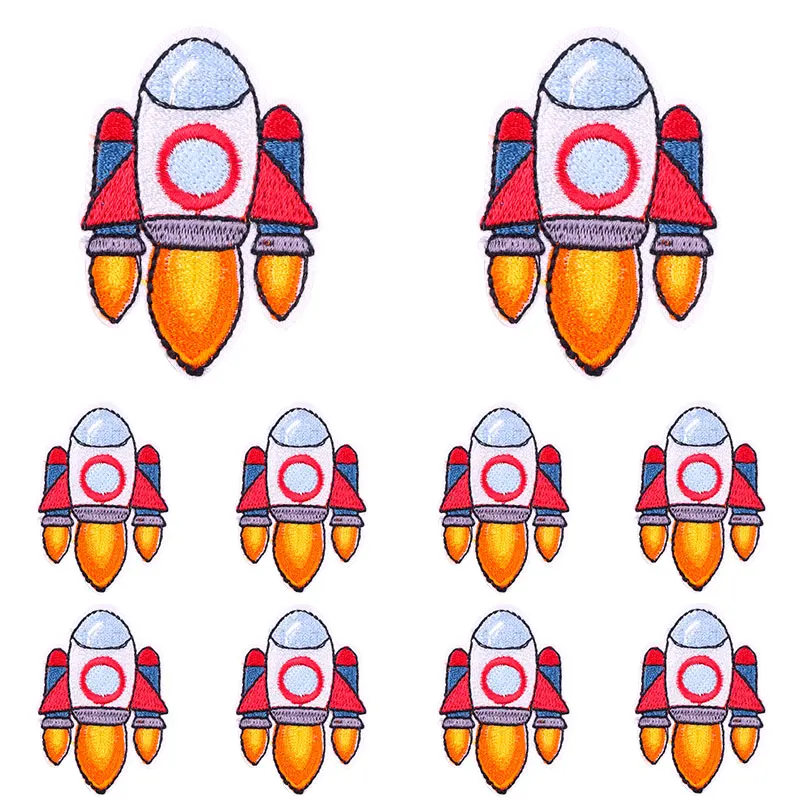 Parche bordado de coche de juguete/cohete, 10 Uds., parches de hierro de dibujos animados para ropa, chaquetas, pantalones vaqueros, parches bordados para coser Diy en ropa