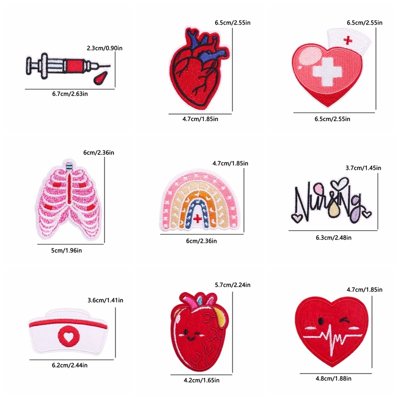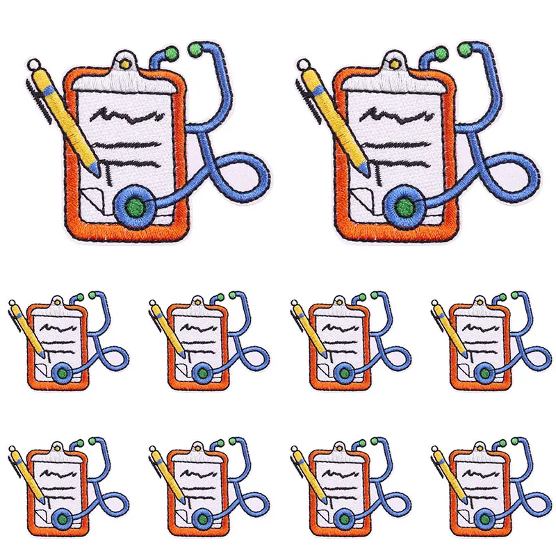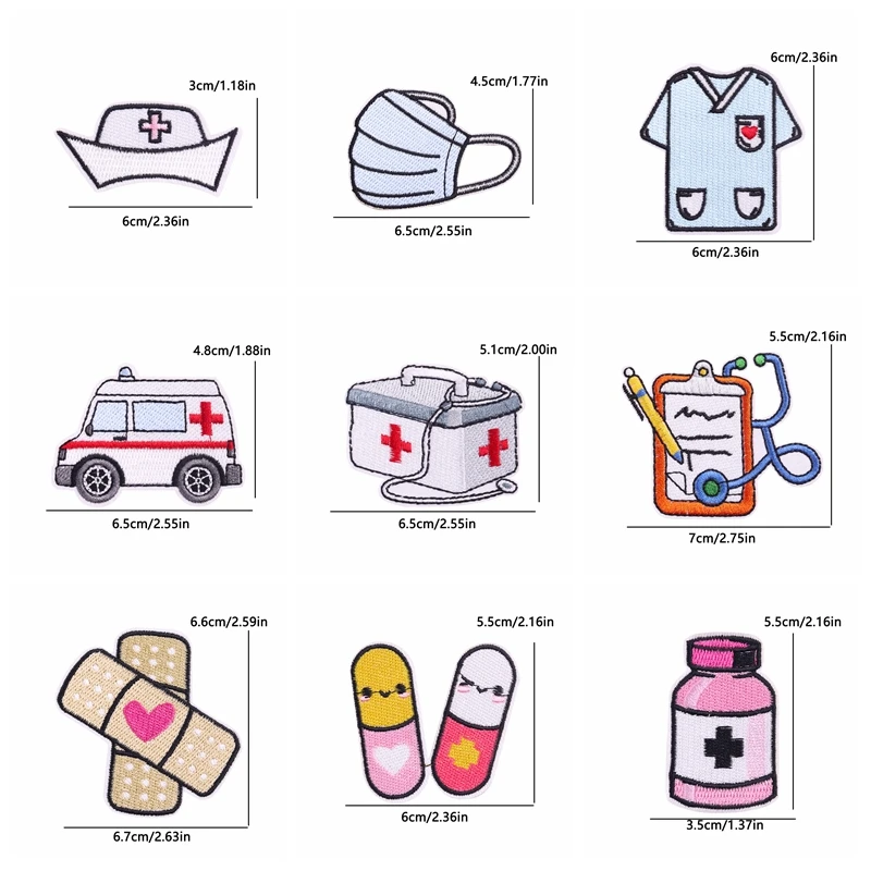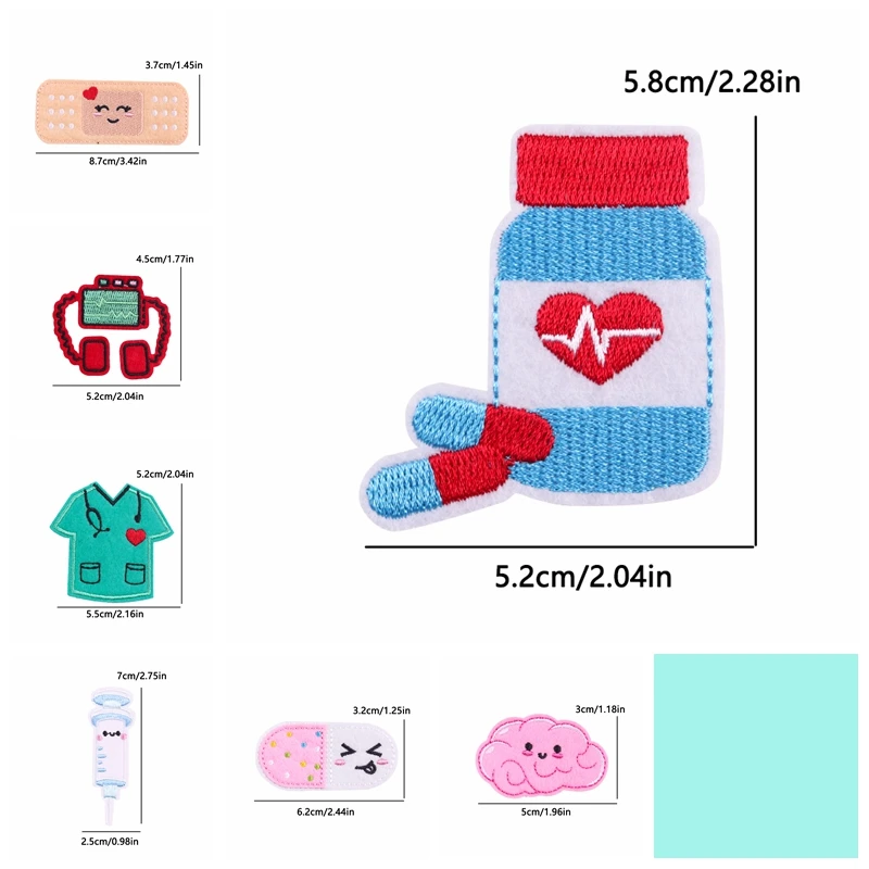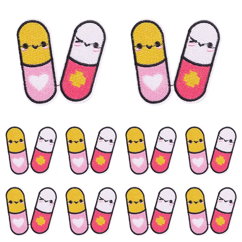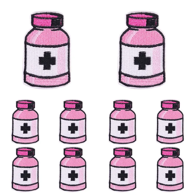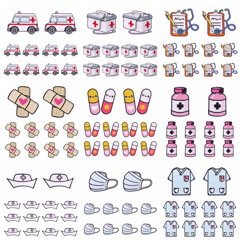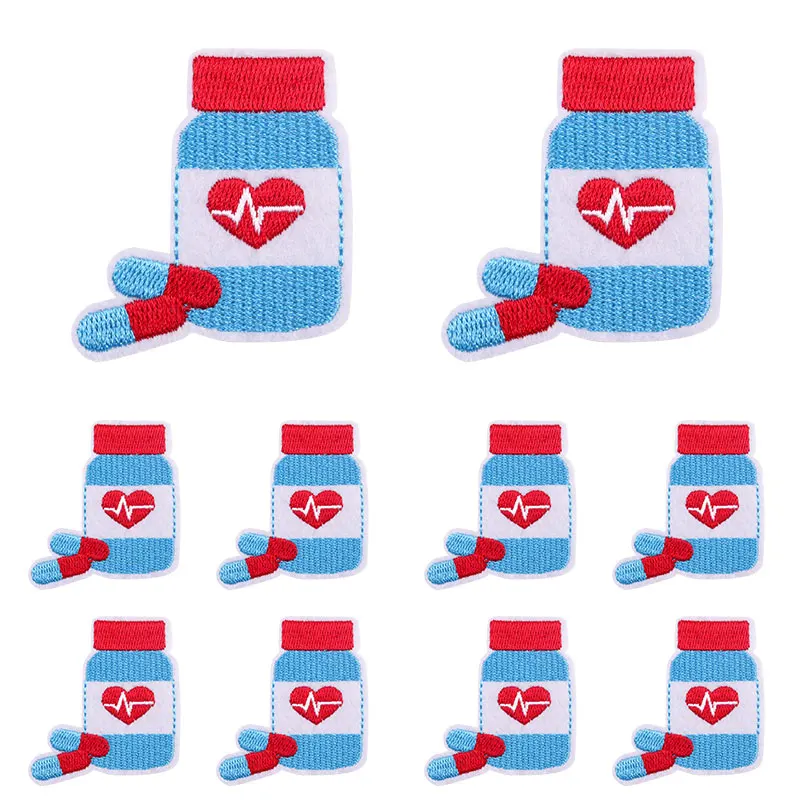 Parche bordado de suministros médicos de dibujos animados para ropa, máscara DIY, parche para pastillas, parches para planchar, apliques de costura para ropa, 10