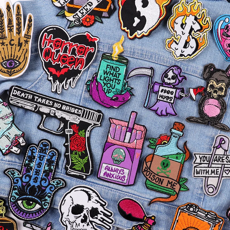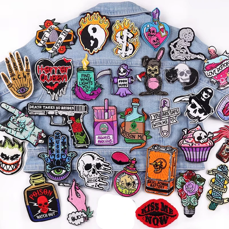 Parche bordado DIY parche Punk parches de calavera/botella para ropa parches termoadhesivos en ropa pegatinas bordadas cosidas